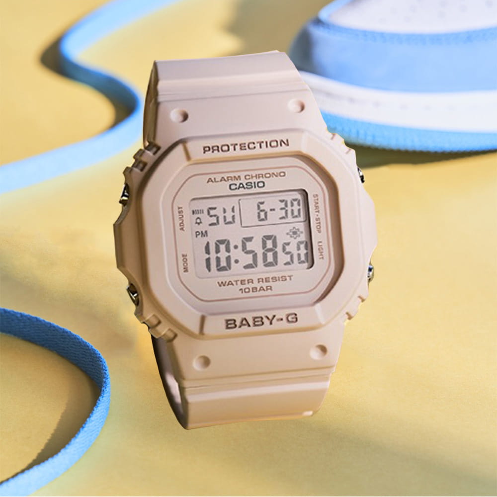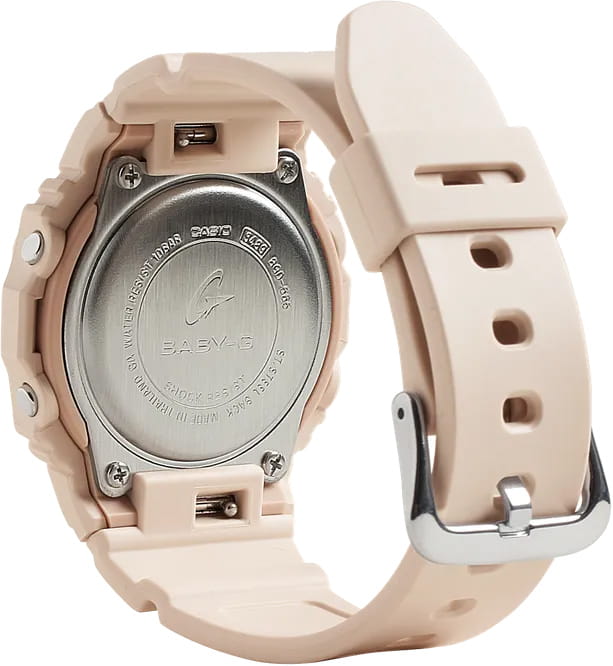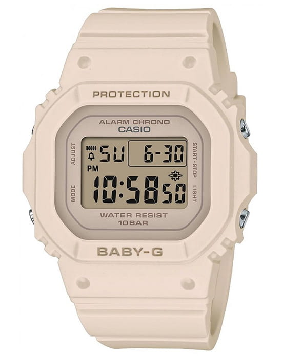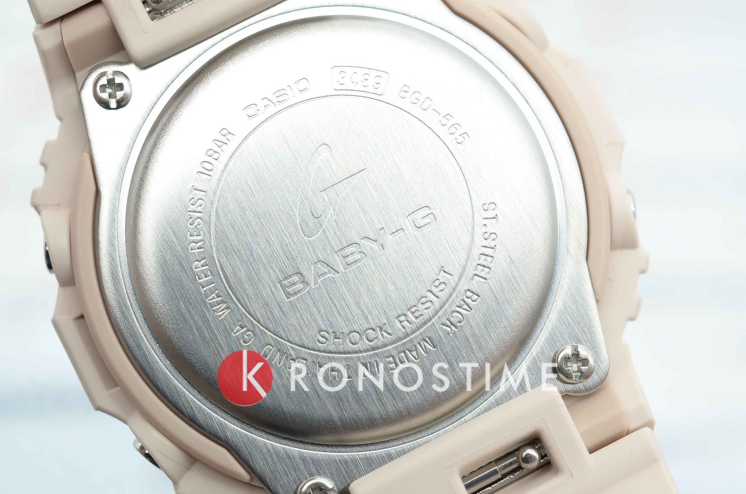 Женские противоударныеУдаропрочный корпусМеханизм заключён в корпус, выполненный из современных материалов, устойчивых к ударам, механическим повреждениям и падению с высоты: инновационный пластик, карбон, нержавеющая сталь, титан. японские часы Casio Baby-G BGD-565-4E, кварцевый механизм с высокой точностью. Класс водозащиты: 100 метров, позволит плавать, нырять и заниматься другими водными видами спорта. Электролюминесцентная подсветкаЭлектролюминесцентная подсветкаЭлектролюминесцентная панель устанавливается под ЖК-экраном часов, при нажатии кнопки электричество преобразуется в свет за счёт подачи напряжения на атомы фосфора, такой тип подсветки позволяет освещать весь циферблат. подсветка дисплея помогает считывать информацию при плохом освещении. Световая индикация сигнала. Цвет подсветки: сине-зеленый. Корпус часов изготовлен из пластика, бежевого цвета. СекундомерСекундомерСекундоме́р — прибор, способный измерять интервалы времени с точностью до долей секунды. с двумя точностями показаний: 1/100с (до 1ч) и 1с (после 1ч) и временем измерения 24ч. Сплит-хронографСплит-хронографИспользуется для измерения продолжительности нескольких временных отрезков, начинающихся одновременно, а заканчивающихся в разное время.. ТаймерТаймерОтсчитывает секунды в обратном направлении в заданном интервале времени. обратного отсчета от 1сек до 24ч с автоповтором. Типы сигналов: ежедневный, ежемесячный, каждый день определенного месяца, на определенную дату. Водонепроницаемость в соответствии с ISO 2281. Ремешок с классической застежкой и системой быстрой замены.