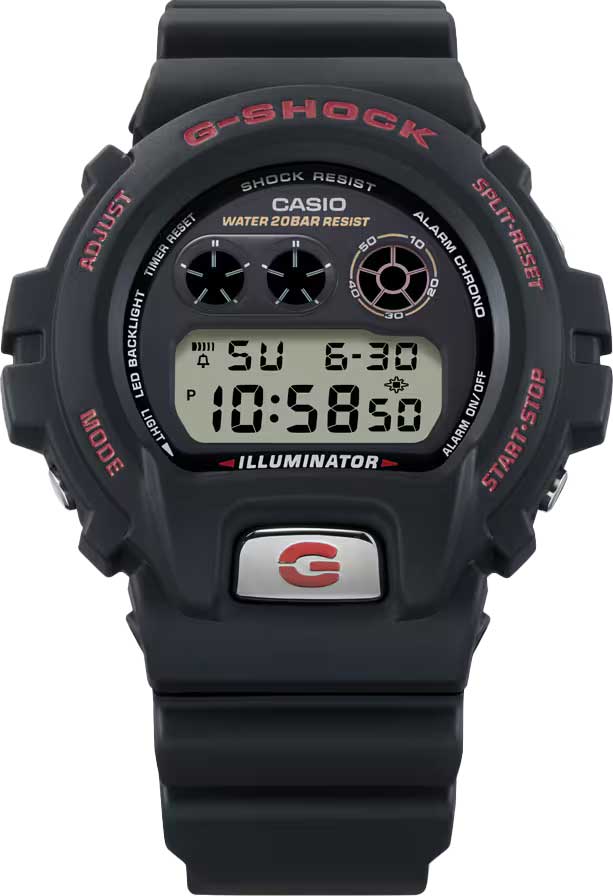 Японские мужские часы Casio G-Shock DW-6900TR-1. В дизайне модели прослеживается визуальная эстетика 90-х годов, что добавляет ей особого шарма в глазах тех, кто помнит первые кассетные плееры SONY и двухкассетники SHARP. При активации подсветки на циферблате появляется надпись «Since 1995». Ударопрочный корпусУдаропрочный корпусМеханизм заключён в корпус, выполненный из современных материалов, устойчивых к ударам, механическим повреждениям и падению с высоты: инновационный пластик, карбон, нержавеющая сталь, титан. из полимерного материала защищает механизм от ударов и вибрации. Минеральное стеклоМинеральное стеклоМинеральное стекло представляет собой искусственно выращенный минерал кварца. Такое стекло отличается особой устойчивостью к повреждениям и царапинам. Уступает по некоторым качествам сапфировому стеклу. устойчивое к появлению царапин, обладающее высокой прозрачностью. Светодиодная подсветкаСветодиодная подсветкаСветодиодная или LED-подсветка обеспечивает появление яркого холодного свечения за счёт LED-элементов - маленьких лампочек. Они потребляют минимальное количество энергии, чаще всего можно встретить 1 светодиод, в нижней части циферблата., послесвечение. 12/24-часовой формат. вечный календарьВечный календарьКлассическое часовое усложнение, представляющее собой календарь, рассчитанный на несколько лет вперёд (стандартно – до 2099 года). Определяет текущую дату, день недели, месяц.. СекундомерСекундомерСекундоме́р — прибор, способный измерять интервалы времени с точностью до долей секунды.. ТаймерТаймерОтсчитывает секунды в обратном направлении в заданном интервале времени.. Часовой сигнал времени. Многофункциональный будильник. Класс водозащиты: 200 метров, позволит плавать, нырять и заниматься другими водными видами спорта. Ремешок из полимерного материала на стандартной застежке.