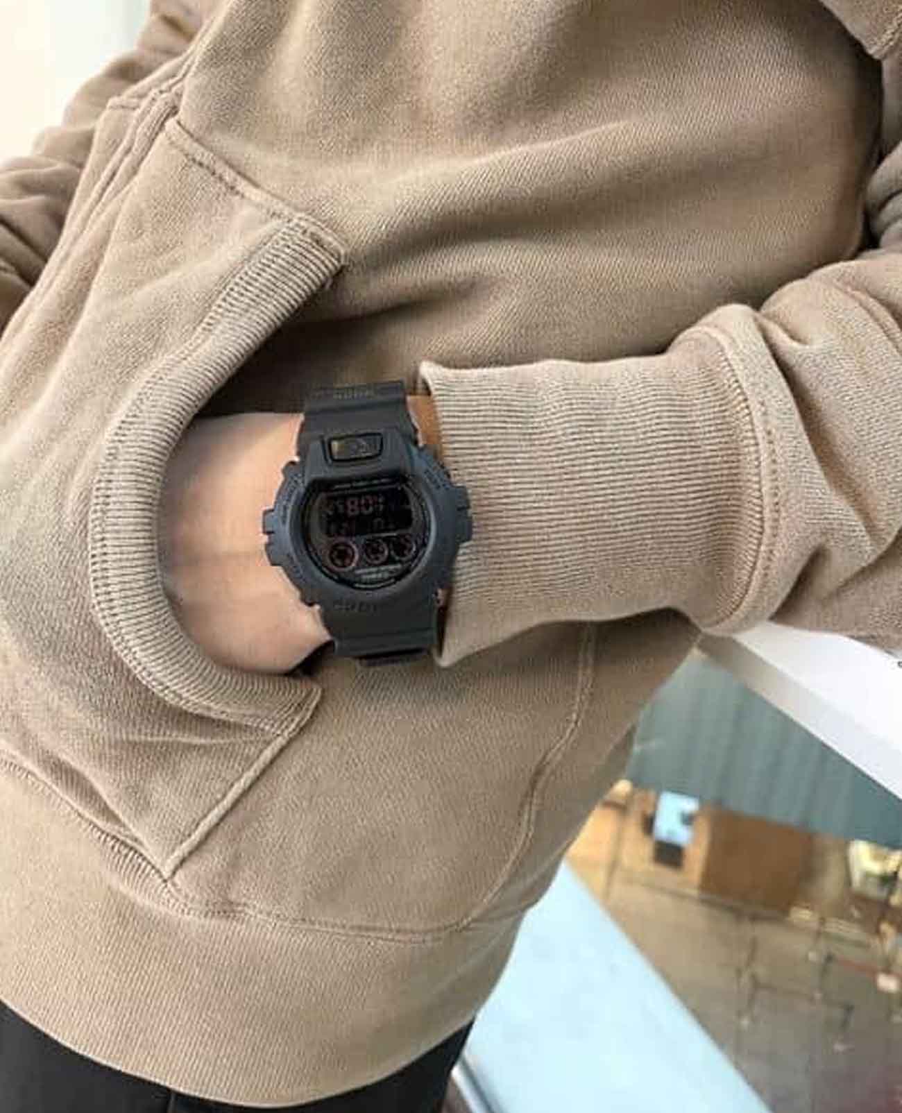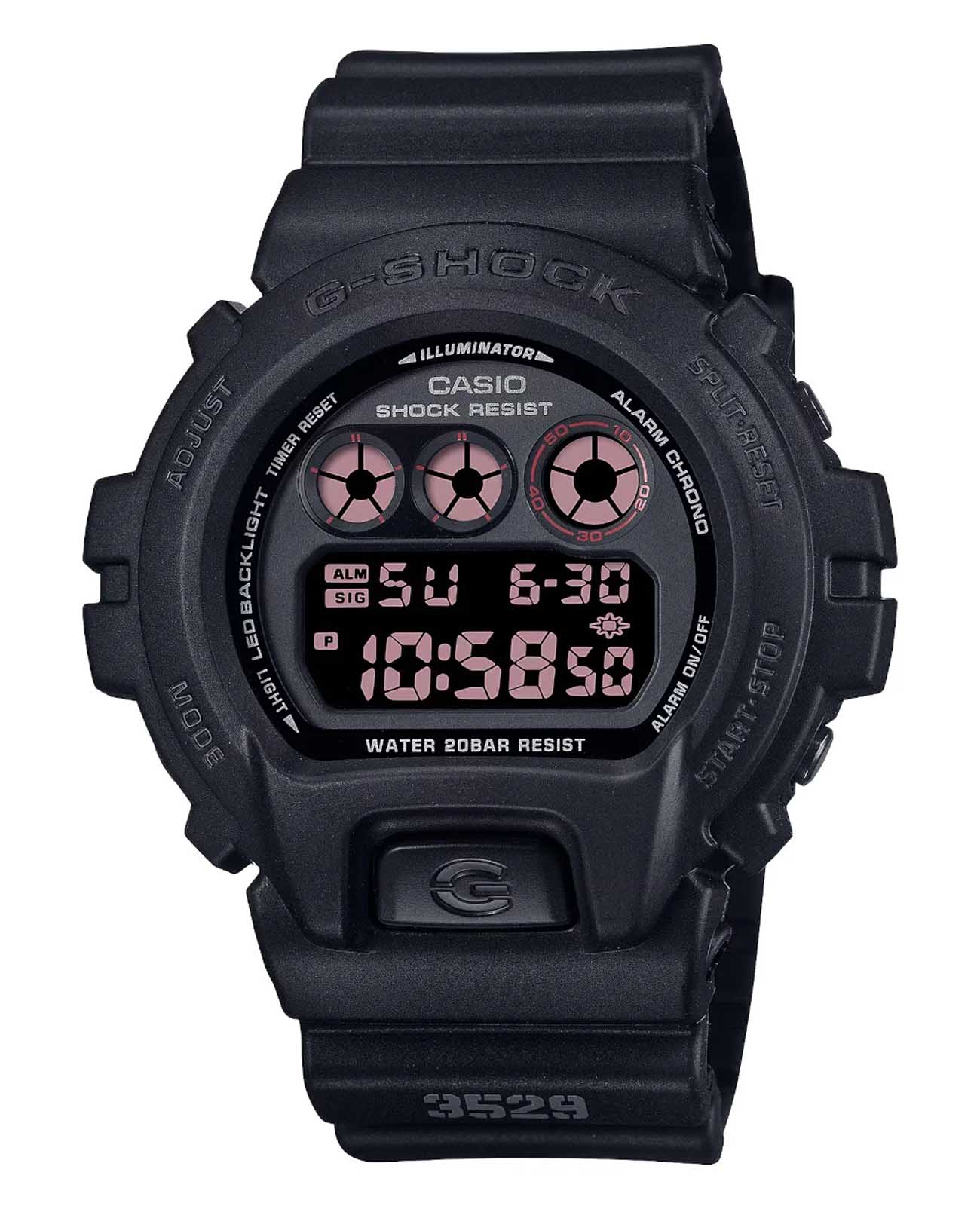 Японские мужские часы Casio G-Shock DW-6900UMS-1DR. В дизайне модели прослеживается визуальная эстетика 90-х годов, что добавляет ей особого шарма в глазах тех, кто помнит первые кассетные плееры SONY и двухкассетники SHARP. Ударопрочный корпусУдаропрочный корпусМеханизм заключён в корпус, выполненный из современных материалов, устойчивых к ударам, механическим повреждениям и падению с высоты: инновационный пластик, карбон, нержавеющая сталь, титан. из полимерного материала защищает механизм от ударов и вибрации. Минеральное стеклоМинеральное стеклоМинеральное стекло представляет собой искусственно выращенный минерал кварца. Такое стекло отличается особой устойчивостью к повреждениям и царапинам. Уступает по некоторым качествам сапфировому стеклу. устойчивое к появлению царапин, обладающее высокой прозрачностью. Светодиодная подсветкаСветодиодная подсветкаСветодиодная или LED-подсветка обеспечивает появление яркого холодного свечения за счёт LED-элементов - маленьких лампочек. Они потребляют минимальное количество энергии, чаще всего можно встретить 1 светодиод, в нижней части циферблата., послесвечение. 12/24-часовой формат. вечный календарьВечный календарьКлассическое часовое усложнение, представляющее собой календарь, рассчитанный на несколько лет вперёд (стандартно – до 2099 года). Определяет текущую дату, день недели, месяц.. СекундомерСекундомерСекундоме́р — прибор, способный измерять интервалы времени с точностью до долей секунды.. ТаймерТаймерОтсчитывает секунды в обратном направлении в заданном интервале времени.. Часовой сигнал времени. Многофункциональный будильник. Класс водозащиты: 200 метров, позволит плавать, нырять и заниматься другими водными видами спорта. Ремешок из полимерного материала на стандартной застежке.