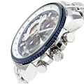 Мужские часы-хронографХронографФункция позволяет измерять отрезки времени с особой точностью: часы, минуты, секунды. Верным признаком хронографа является наличие на циферблате 3 дополнительных окошек-счётчиков.  Casio Edifice EF-558D-2A, кварцевый механизм с высокой точностью. Минеральное стеклоМинеральное стеклоМинеральное стекло представляет собой искусственно выращенный минерал кварца. Такое стекло отличается особой устойчивостью к повреждениям и царапинам. Уступает по некоторым качествам сапфировому стеклу. устойчивое к появлению царапин, обладающее высокой прозрачностью. СекундомерСекундомерСекундоме́р — прибор, способный измерять интервалы времени с точностью до долей секунды. с точностью показаний 1/10с и временем измерения 1ч. Корпус и браслет изготовлены из нержавеющей стали. БезельБезельВнешний ободок, закрепляющий стекло. В спортивных часах так называется поворотное кольцо с делениями на циферблате, выполняет роль таймера – замеряет отрезки времени на шкале. Неподвижный безель – элемент декора. Однонаправленно вращающийся безель на дайверских часах позволяет фиксировать моменты погружения и выныривания на поверхность. с тахиметромТахиметрРазмеченная шкала, располагается на ободке или безеле часов. Тахиметр позволяет рассчитать скорость на определённом участке пути, расстояние измеряется в километрах или милях. изготовлен из стали с IP-покрытиемIP-покрытиеМетод ионного напыления. Демонстрирует повышенную устойчивость к истиранию, окислению и химическим веществам. Под воздействием высокого давления и температуры около 1500°C молекулы металла надёжно соединяются с частицами корпуса часов.. Класс водозащиты: 100 метров, позволит плавать, нырять и заниматься другими водными видами спорта. Заводная головка с защитой. Стальной браслет на раскладной застёжкеРаскладная застёжкаТакой тип застёжки используется только на браслетах из металла. Она никогда не раскрывается полностью, происходит разделение на 2 и более частей. Раскладывающая застёжка снизит вероятность потери часов к минимуму..