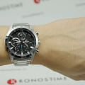 Аксессуар с автомобильным характером имеет ударопрочный корпусУдаропрочный корпусМеханизм заключён в корпус, выполненный из современных материалов, устойчивых к ударам, механическим повреждениям и падению с высоты: инновационный пластик, карбон, нержавеющая сталь, титан. из нержавеющей стали 316L, необычно смотрятся угловатые грани. На чёрном циферблате с бирюзовыми акцентами располагается множество окошек и счётчиков, но это не добавляет перегруженности. Японский кварцевый механизм с высокой точностью хода приводится в работу за счёт батарейки, рассчитанной на 3 года. Надёжный стальной браслет. Водостойкость 10 бар. Завинчивающаяся задняя крышка. Минеральное стеклоМинеральное стеклоМинеральное стекло представляет собой искусственно выращенный минерал кварца. Такое стекло отличается особой устойчивостью к повреждениям и царапинам. Уступает по некоторым качествам сапфировому стеклу.. Крупная индикация даты, хронографХронографФункция позволяет измерять отрезки времени с особой точностью: часы, минуты, секунды. Верным признаком хронографа является наличие на циферблате 3 дополнительных окошек-счётчиков., секундомер. Габариты: 47,1 x 51 x 11,3 мм.