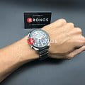 Динамично выглядят элементы красного цвета, помогающие создать целостный облик в автомобильной тематике. Наручные часы с чёрным циферблатом будут отличным вариантом для ежедневного ношения, базовые функции помогут в решении повседневных проблем: секундомер, таймер, мировое времяМировое время Полезное часовое усложнение, отображающее время в основных городах и известных областях по всему миру, оно связано с часовыми поясами, удобно для путешественников и бизнесменов. , будильник, хронографХронографФункция позволяет измерять отрезки времени с особой точностью: часы, минуты, секунды. Верным признаком хронографа является наличие на циферблате 3 дополнительных окошек-счётчиков., записная книжка на 30 ячеек памяти, календарь. Модель не нуждается в заводе, японский кварцевый механизм работает от батарейки, которая будет обеспечивать работу часов на протяжении 10 лет. Минеральное стекло. Люминесцентная подсветкаЛюминесцентное покрытиеПозволяет считывать показания времени в темноте. Производители наносят на стрелки, часовые индексы, безель или поверхность циферблата светонакопительный состав, дающий холодное свечение.. Корпус и браслет из стали 316L, устойчивой к коррозии. БезельБезельВнешний ободок, закрепляющий стекло. В спортивных часах так называется поворотное кольцо с делениями на циферблате, выполняет роль таймера – замеряет отрезки времени на шкале. Неподвижный безель – элемент декора. Однонаправленно вращающийся безель на дайверских часах позволяет фиксировать моменты погружения и выныривания на поверхность. с чёрным IP-покрытиемIP-покрытиеМетод ионного напыления. Демонстрирует повышенную устойчивость к истиранию, окислению и химическим веществам. Под воздействием высокого давления и температуры около 1500°C молекулы металла надёжно соединяются с частицами корпуса часов.. Сохранение водонепроницаемости конструкции до 10 бар. Габариты: 51,5 x 46,9 x 14,2 мм.