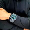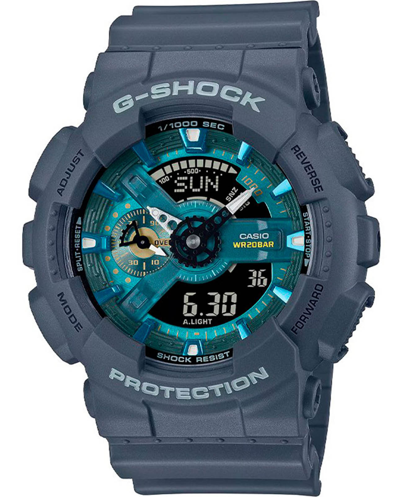 Мужские кварцевые часы Casio GA-110AS-2A — это лимитированная модель из коллекции G-Shock, сочетающая в себе устойчивость к внешним воздействиям и стильный дизайн. Модель выполнена из биопластика, который производится из возобновляемых органических ресурсов, что делает её экологичной и прочной. Циферблат вдохновлён морскими волнами, а его поверхность защищена минеральным стекломМинеральное стеклоМинеральное стекло представляет собой искусственно выращенный минерал кварца. Такое стекло отличается особой устойчивостью к повреждениям и царапинам. Уступает по некоторым качествам сапфировому стеклу., устойчивым к повреждениям. Корпус и ремешок из полимерного пластика оснащены функцией ударопрочности, которая защищает механизм от ударов и вибраций. Часы также устойчивы к магнитным полям. Функциональность модели включает таймер обратного отсчёта, хронограф, секундомер с точностью 1/100 секунды, будильник, мировое время (48 городов, 31 часовой пояс), вечный календарь до 2099 года, сигнал начала часа, функцию летнего времени (DST) и функцию выключения звука нажатия кнопок (Mute). Подсветка выполнена по технологии светодиодной подсветкиСветодиодная подсветкаСветодиодная или LED-подсветка обеспечивает появление яркого холодного свечения за счёт LED-элементов - маленьких лампочек. Они потребляют минимальное количество энергии, чаще всего можно встретить 1 светодиод, в нижней части циферблата., которая автоматически включается при повороте часов к лицу. Цвет подсветки — оранжевый, а послесвечение длится 1,5 или 3 секунды. Стрелки и цифры имеют необритовое покрытиеПодсветка NeobriteИспользование светонакопительных составов на основе сульфида цинка или алюмината стронция, яркий свет можно наблюдать на протяжении 6-10 часов после «зарядки» часов около источника света., обеспечивающее длительное послесвечение даже после кратковременного нахождения на свету. Часы водонепроницаемы до 200 метров (, что позволяет использовать их при плавании и других водных активностях без глубокого погружения. Гарантия 12 месяцев подтверждает качество и долговечность изделия. Эти часы станут универсальным аксессуаром для тех, кто ценит сочетание стиля, функциональности и надёжности — идеальный выбор для повседневной носки и активного образа жизни.