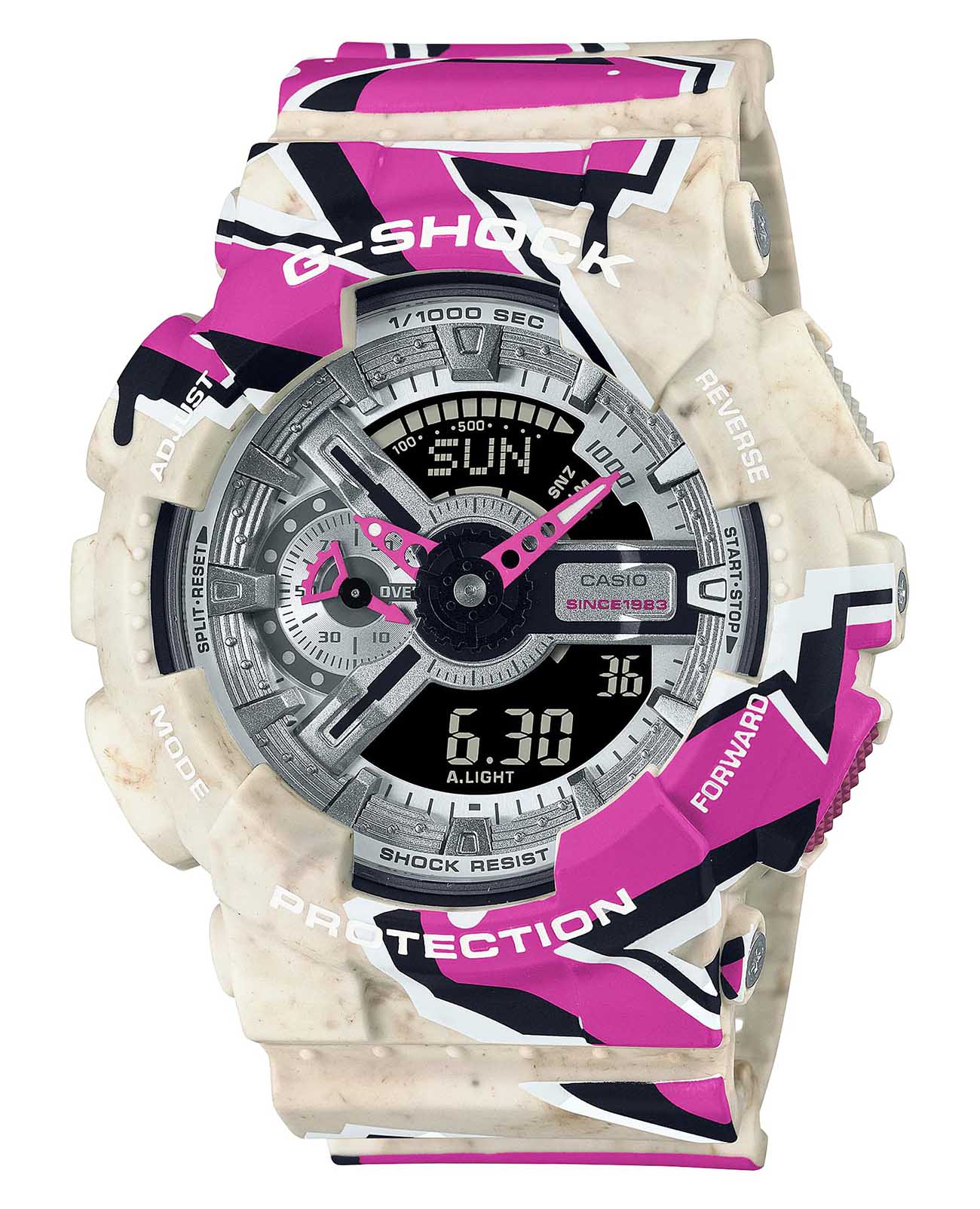 Ударопрочные, мужские часы в яркой расцветке Casio G-Shock GA-110SS-1ADR (GA-110SS-1A), электронный механизм с высокой точностью. Класс водозащиты: 200 метров, позволит плавать, нырять и заниматься другими водными видами спорта. Корпус часов изготовлен из пластика, цвета.