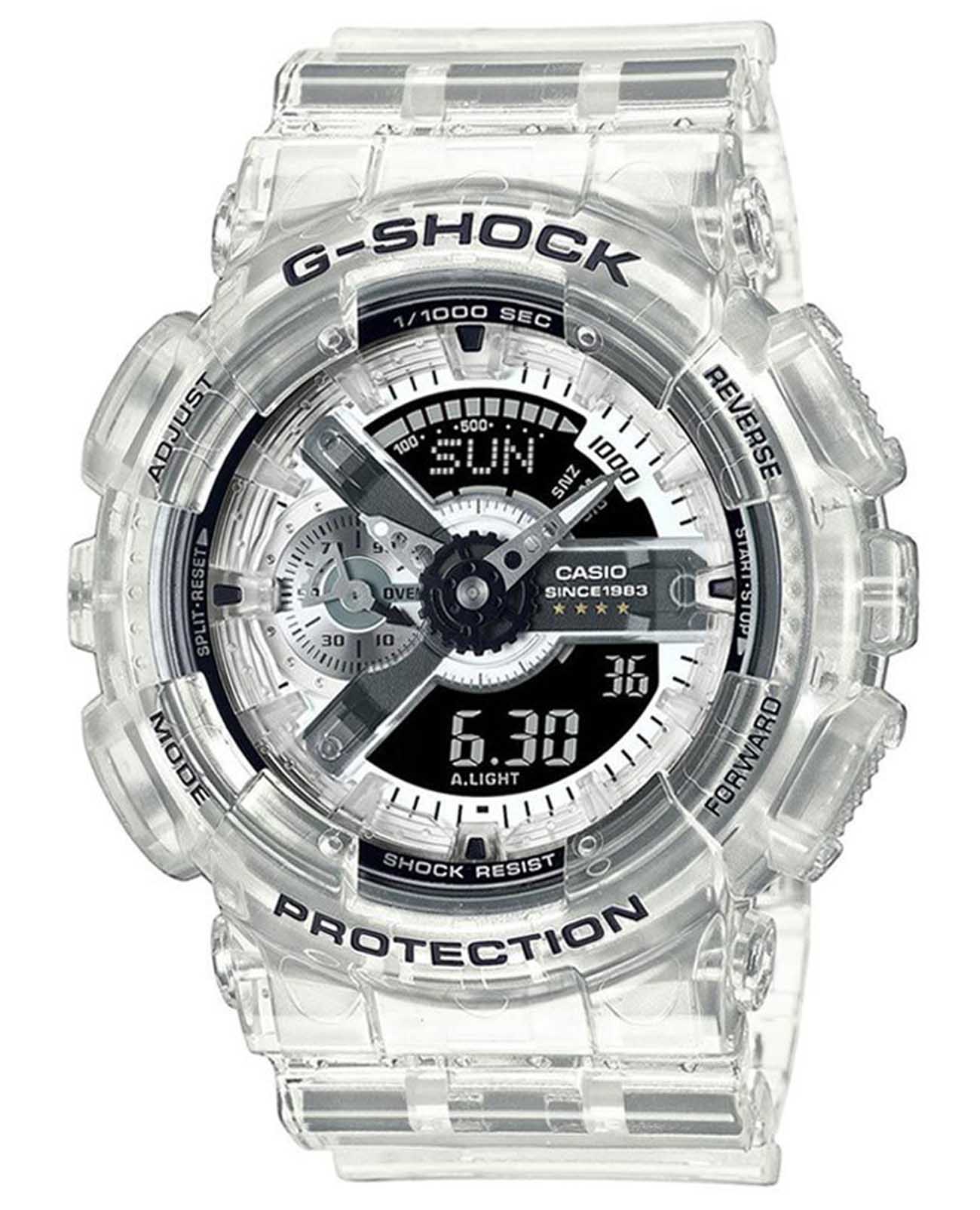 Спортивные японские мужские часы с секундомеромСекундомерСекундоме́р — прибор, способный измерять интервалы времени с точностью до долей секунды. и хронографомХронографФункция позволяет измерять отрезки времени с особой точностью: часы, минуты, секунды. Верным признаком хронографа является наличие на циферблате 3 дополнительных окошек-счётчиков. Casio G-Shock 40th Anniversary GA-114RX-7A, кварцевый механизм с высокой точностью. Лимитированная серия посвящена 40-летию G-SHOCK. Корпус и ремешок часов изготовлены из биопластика, который изготавливается из возобновляемых органических ресурсов. Ударопрочный корпусУдаропрочный корпусМеханизм заключён в корпус, выполненный из современных материалов, устойчивых к ударам, механическим повреждениям и падению с высоты: инновационный пластик, карбон, нержавеющая сталь, титан. защищает механизм от ударов и вибрации. СекундомерСекундомерСекундоме́р — прибор, способный измерять интервалы времени с точностью до долей секунды. с точностью показаний 1/1000с и временем измерения 100ч. ТаймерТаймерОтсчитывает секунды в обратном направлении в заданном интервале времени. обратного отсчета от 1мин до 24ч с автоповтором. Мировое времяМировое время Полезное часовое усложнение, отображающее время в основных городах и известных областях по всему миру, оно связано с часовыми поясами, удобно для путешественников и бизнесменов. – 48 городов (29 часовых поясов), всемирное координированное время (UTC). Функция включения/отключения летнего времени. Переключение между домашним и мировым временем. Батарея рассчитана на 2 года. Класс водозащиты: 200 метров, позволит плавать, нырять и заниматься другими водными видами спорта. Ремешок из полимерного материала на стандартной застежке.