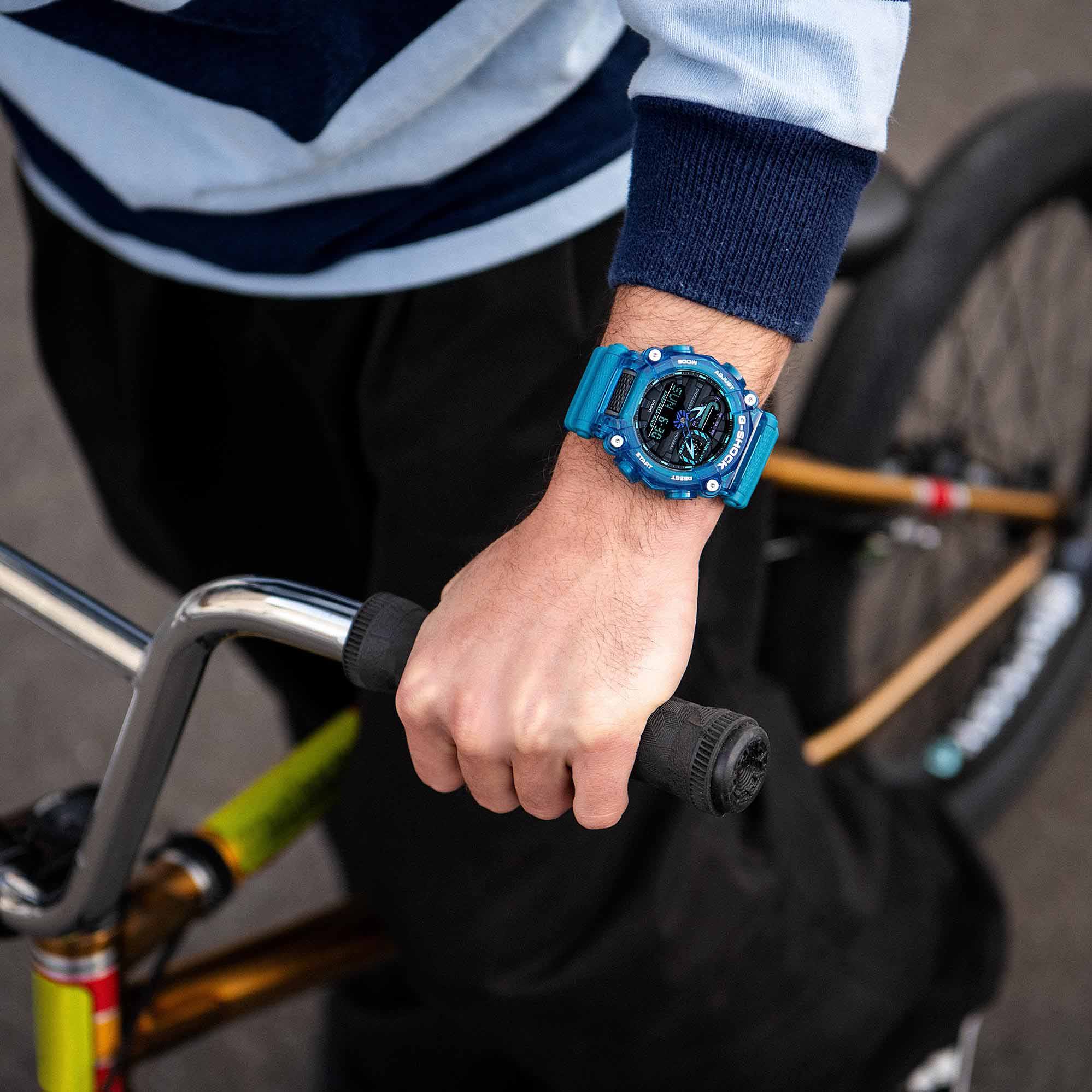 Мужские японские противоударные часы с хронографом Casio G-Shock GA-900SKL-2A, электронный механизм с высокой точностью. Класс водозащиты: 200 метров, позволит плавать, нырять и заниматься другими водными видами спорта. Корпус часов изготовлен из пластика, прозрачного цвета.
