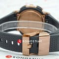 Корпус часов бронзового цвета изготовлен из нержавеющей стали с внутренним корпусом из полимерного пластика. Часы ударопрочные с водозащитой до 200 метров. Светодиодная подсветка Super Illuminator с автоматическим переключением света, возможностью выбрать продолжительность освещения (1,5 секунды или 3 секунды), послесвечение. Ремешок из полимерного материала с классической застежкой.