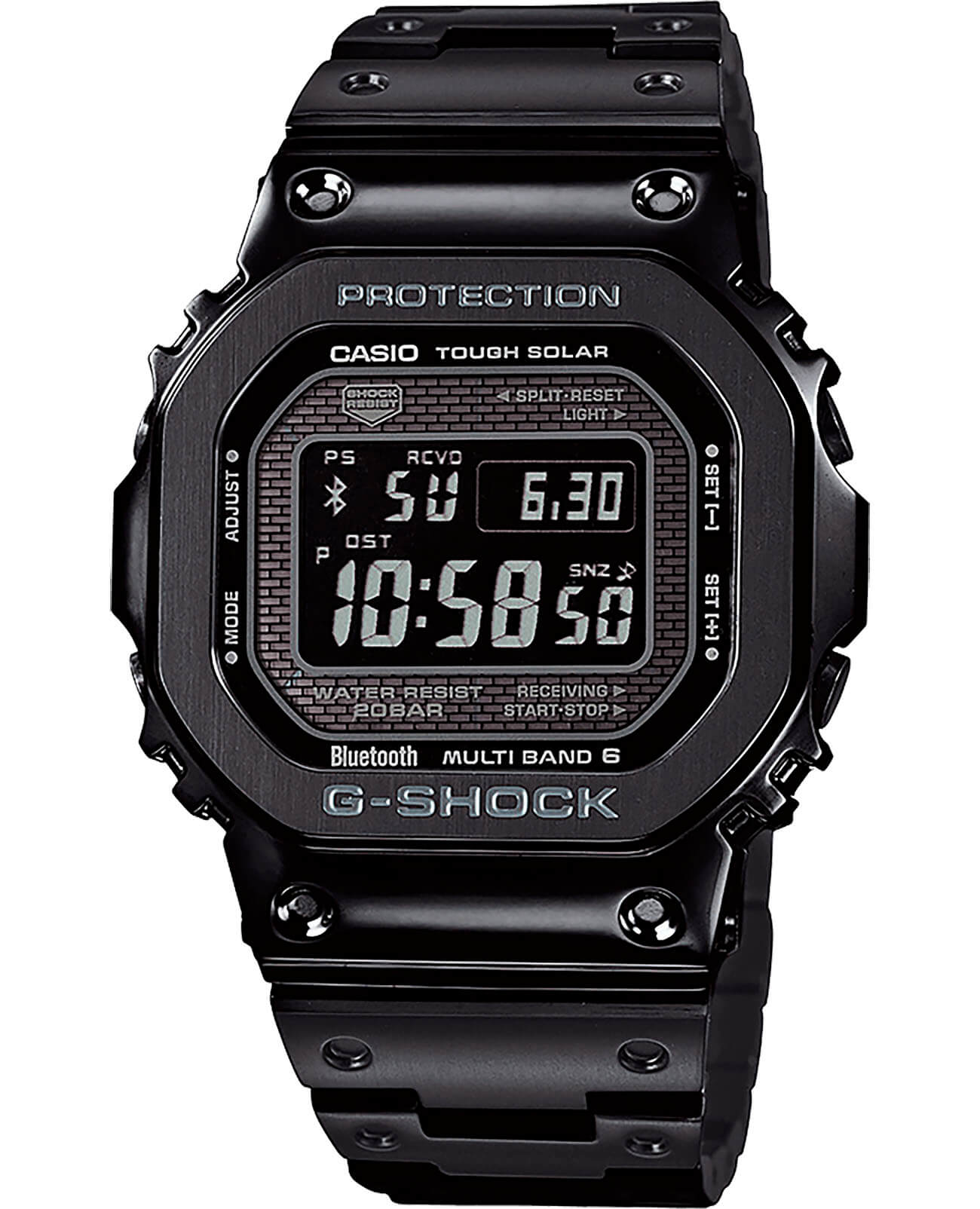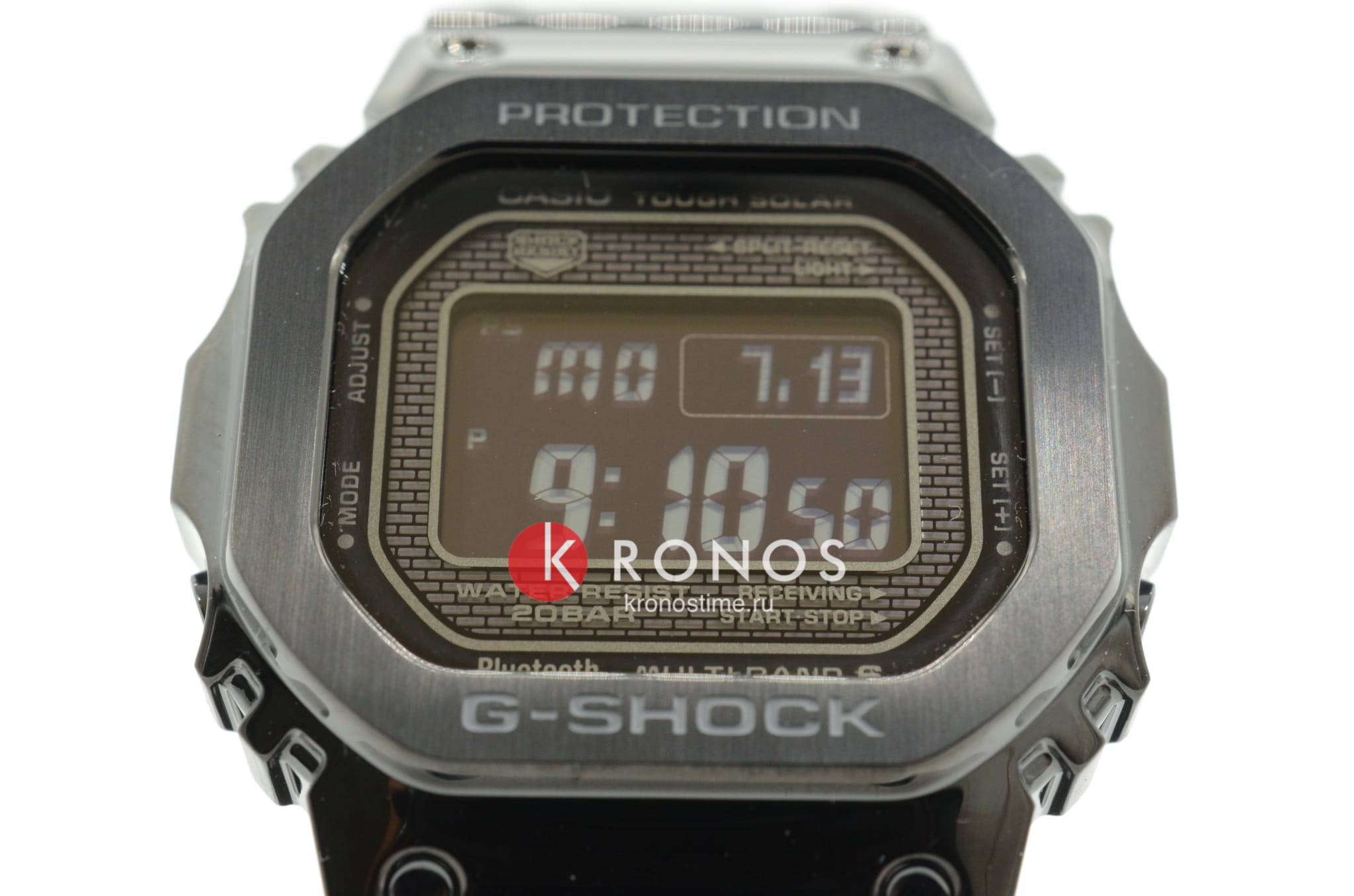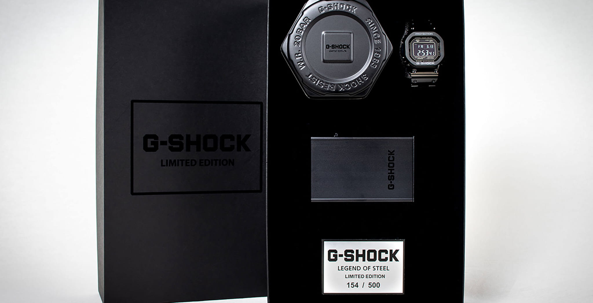 Олдскульная модель Limited Edition комплектуется набором сопутствующих предметов. В матовый черный кейс вложен лимитированный кардхолдер с логотипом Casio G-Shock. Он разрабатывался совместно с немецкой компанией Tru Virtu, производящей аксессуары, защищающие личные данные владельца электронных и пластиковых карт. Металл препятствует снятию данных сторонними устройствами, устойчив к размагничиванию, деформации, воздействию песка и жидкости. Каждый экземпляр сопровождается номерным удостоверением, выполненным в виде металлической карточки. Противоударный корпусУдаропрочный корпусМеханизм заключён в корпус, выполненный из современных материалов, устойчивых к ударам, механическим повреждениям и падению с высоты: инновационный пластик, карбон, нержавеющая сталь, титан. защищает японский кварцевый механизм, слой материала Alpha Gel® обеспечивает дополнительное усиление конструкции. Энергия для работы образуется за счёт источников света – технология . STN-дисплей отличается высокой контрастностью и расширенным углом обзора. Усложнения: светодиодная подсветкаСветодиодная подсветкаСветодиодная или LED-подсветка обеспечивает появление яркого холодного свечения за счёт LED-элементов - маленьких лампочек. Они потребляют минимальное количество энергии, чаще всего можно встретить 1 светодиод, в нижней части циферблата. Super Illuminator, таймер, хронографХронографФункция позволяет измерять отрезки времени с особой точностью: часы, минуты, секунды. Верным признаком хронографа является наличие на циферблате 3 дополнительных окошек-счётчиков., секундомер, мировое времяМировое время Полезное часовое усложнение, отображающее время в основных городах и известных областях по всему миру, оно связано с часовыми поясами, удобно для путешественников и бизнесменов. , синхронизация BluetoothBluetoothСовременная технология, позволяющая синхронизировать часы с телефоном и переносить данные. Часы с Bluetooth расширяют возможности вашего смартфона и делают его использование ещё более удобным., календарь. Габариты: 43,2 x 49,3 x 13 мм.
