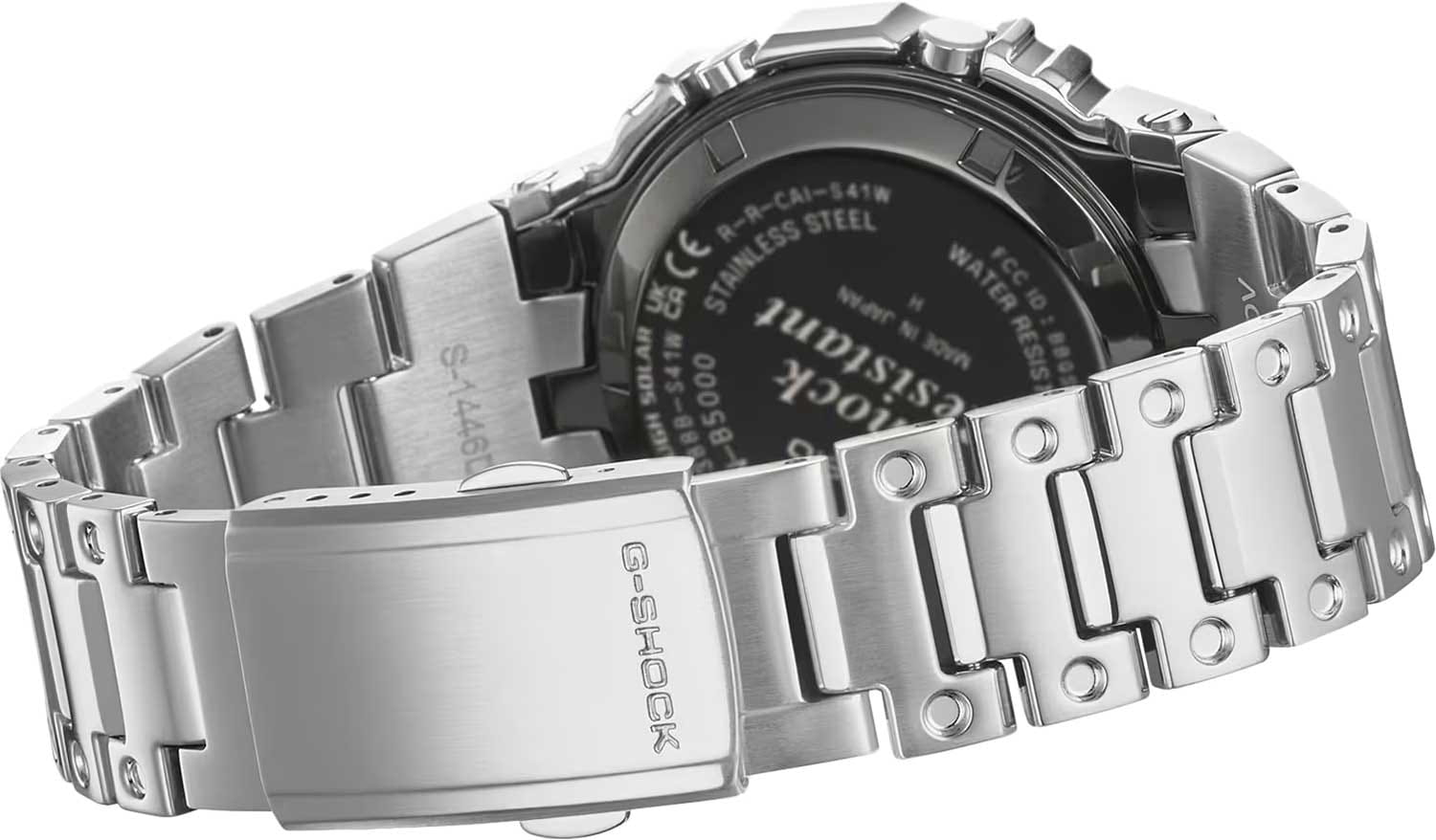 Перед вами супер-лимитированный релиз второй половины 2024 года от Casio! Легендарный олдскульный корпус GMW-B5000, облаченный в классическую сталь с яркой синей рамкой вокруг дисплея, окрашенной с помощью специальной технологии вакуумного лазерного напыления. Премиальные наручные часы серебристой расцветки, напоминающие ретро-модели от Casio, имеют противоударный корпусУдаропрочный корпусМеханизм заключён в корпус, выполненный из современных материалов, устойчивых к ударам, механическим повреждениям и падению с высоты: инновационный пластик, карбон, нержавеющая сталь, титан., благодаря безупречной полировке он выглядит хромированным. БезельБезельВнешний ободок, закрепляющий стекло. В спортивных часах так называется поворотное кольцо с делениями на циферблате, выполняет роль таймера – замеряет отрезки времени на шкале. Неподвижный безель – элемент декора. Однонаправленно вращающийся безель на дайверских часах позволяет фиксировать моменты погружения и выныривания на поверхность. имеет естественную стальную структуру. Слой материала Alpha Gel® обеспечивает дополнительную устойчивость к ударам и повреждениям, завинчивающаяся задняя крышка имеет защитное DLC-покрытиеDLC-покрытиеDiamond like carbon - одно из лучших видов покрытия, представляющее собой углерод с алмазными свойствами. На поверхность материала наносятся распавшиеся молекулы углерода, превращающиеся в плёнку из алмазоподобных связей, которая перенимает твёрдость алмаза.. Модель оснащена богатым функционалом: BluetoothBluetoothСовременная технология, позволяющая синхронизировать часы с телефоном и переносить данные. Часы с Bluetooth расширяют возможности вашего смартфона и делают его использование ещё более удобным., таймерТаймерОтсчитывает секунды в обратном направлении в заданном интервале времени., функция поиска телефона, UTCUTCВсемирное кординационное время, не имеющее привязки к географическому положению Гринвича, основывается на атомном отсчёте времени. Регулировка времени осуществляется более точно, чем устаревшее GMT.