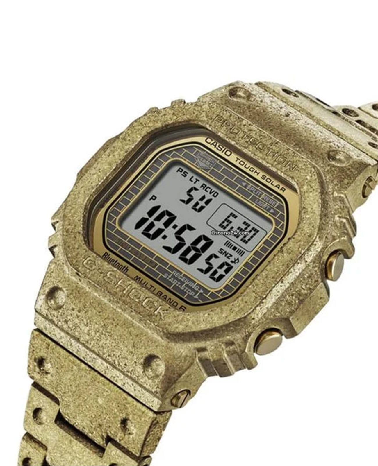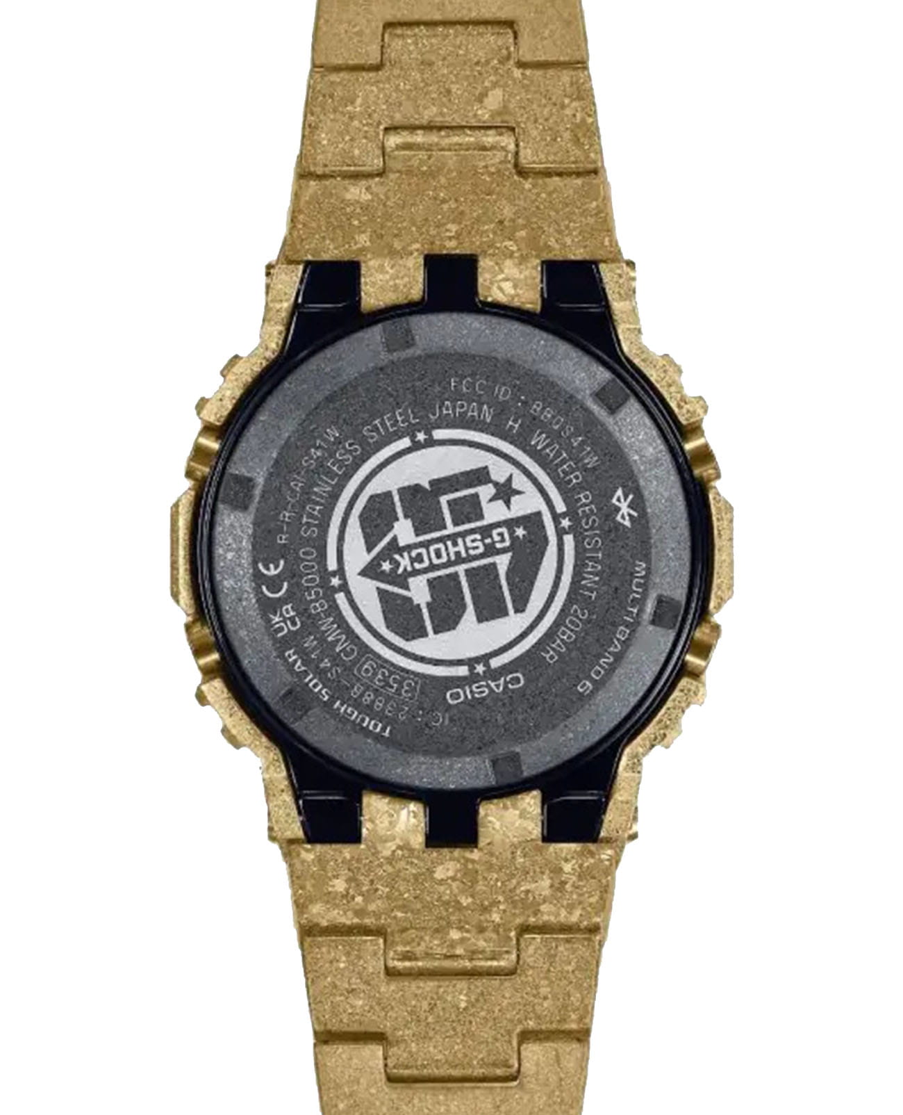 Юбилейная модель GMW-B5000PG - дополнение к линейке GMW-B5000, выполненная в цельнометаллическом корпусе и дополняющая самую первую модель G-SHOCK, DW-5000, которая дебютировала 40 лет назад, в апреле 1983 года. Часы, выпущенные ограниченным тиражом, выполнены из перекристаллизованной нержавеющей стали с глубоким упрочнением, разработанной специально для этого выпуска. После перекристаллизации и многослойной закалки безель и ремешок покрыты ионным золотом, а задняя крышка с винтовым замком покрыта DLC-покрытием для придания смелого, сияющего вида. В знак особого уважения к DW-5000 на циферблате выгравирована фраза “С 1983 года”. Модель оснащена богатым функционалом: BluetoothBluetoothСовременная технология, позволяющая синхронизировать часы с телефоном и переносить данные. Часы с Bluetooth расширяют возможности вашего смартфона и делают его использование ещё более удобным., таймерТаймерОтсчитывает секунды в обратном направлении в заданном интервале времени., функция поиска телефона, UTCUTCВсемирное кординационное время, не имеющее привязки к географическому положению Гринвича, основывается на атомном отсчёте времени. Регулировка времени осуществляется более точно, чем устаревшее GMT.