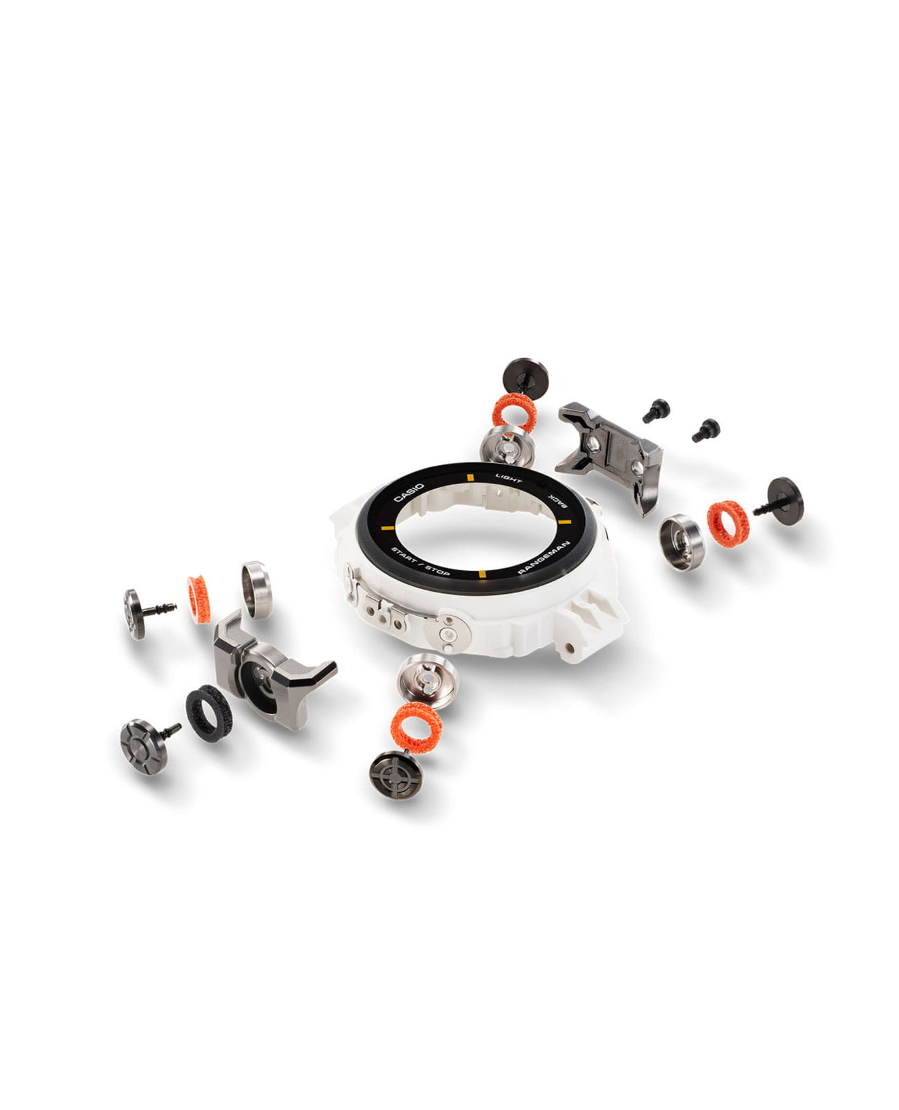 Корпус, безель и ремешок изготовлены из смолы на биологической основе - материала, который, как ожидается, поможет снизить воздействие на окружающую среду. Аксессуар станет универсальным помощником в путешествиях и походах, ведь в вашем распоряжении появляется множество функций: Tough SolarTough SolarТехнология основана на подзарядке аккумулятора от источника солнечного света, специальная панель улавливает солнечные лучи и преобразует их в энергию для работы часов. Достаточно пары минут нахождения на солнце для функционирования часов в течении суток., цифровой компас, хронографХронографФункция позволяет измерять отрезки времени с особой точностью: часы, минуты, секунды. Верным признаком хронографа является наличие на циферблате 3 дополнительных окошек-счётчиков., будильник, барометр, высотомер, лунный календарь, GPS, термометр, Bluetooth-синхронизацияBluetoothСовременная технология, позволяющая синхронизировать часы с телефоном и переносить данные. Часы с Bluetooth расширяют возможности вашего смартфона и делают его использование ещё более удобным., а также функция энергосбережения. Мировое времяМировое время Полезное часовое усложнение, отображающее время в основных городах и известных областях по всему миру, оно связано с часовыми поясами, удобно для путешественников и бизнесменов. . Класс водозащиты: 200 метров, позволит плавать, нырять и заниматься другими водными видами спорта. Ремешок на стандартной застежке.