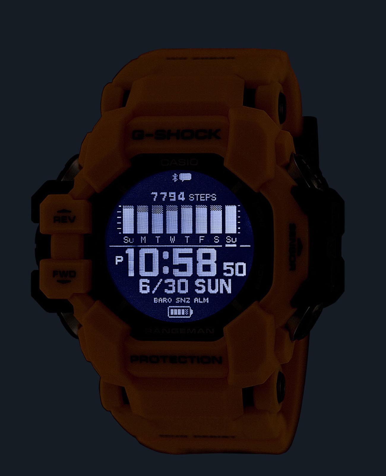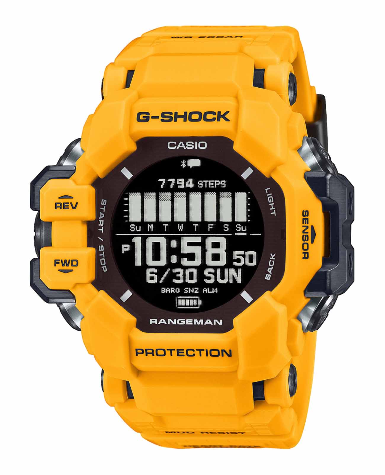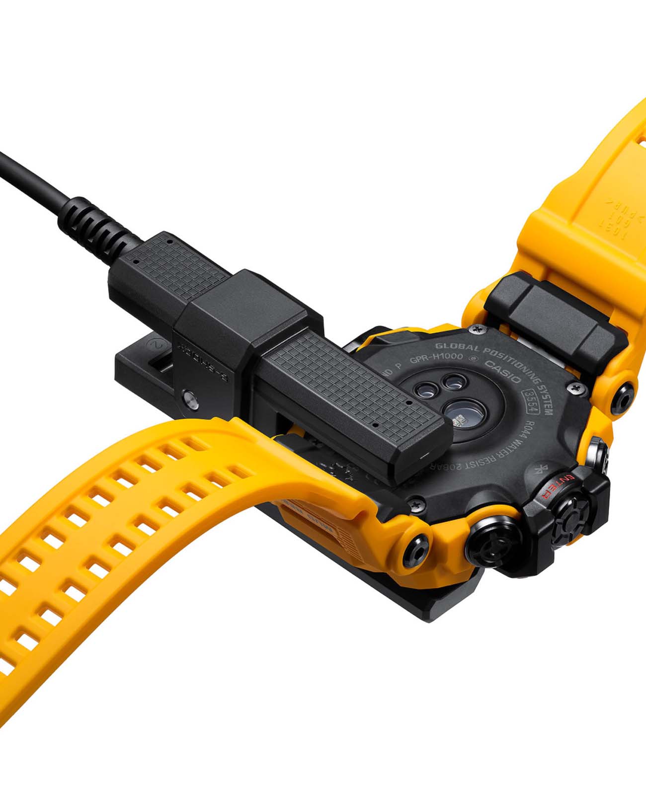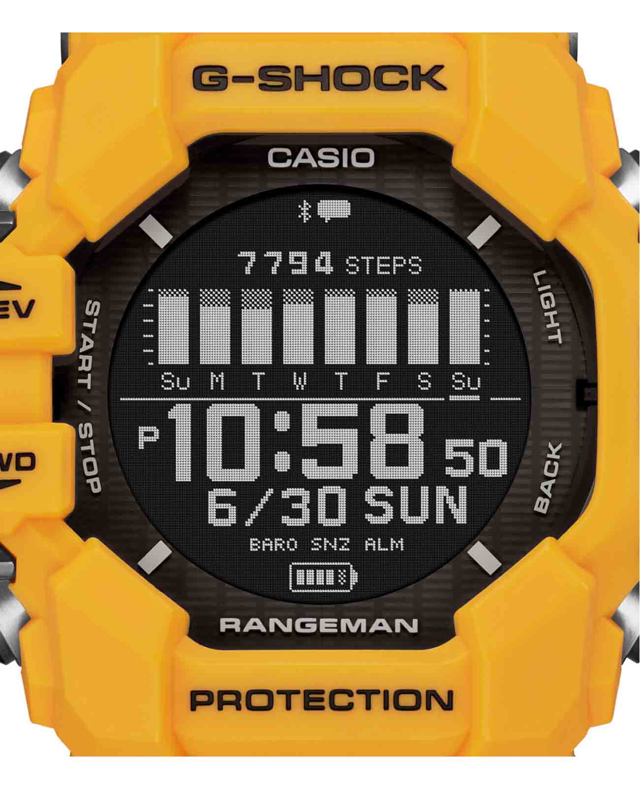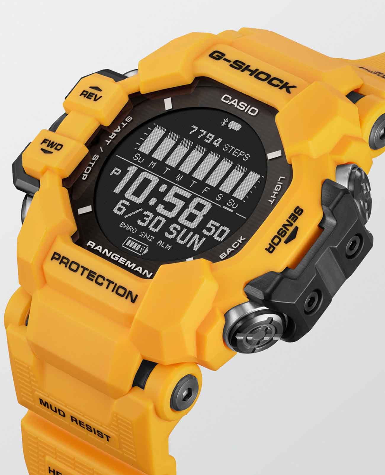 Покоряйте сложные местности и чувствуйте себя потрясающе с этими прочными часами, такими же смелыми и активными, сколь и жесткими. Casio G-Shock GPR-H1000-9 разработаны для работы даже в самых суровых условиях, RANGEMAN GPR-H1000 из линейки MASTER of G - это действительно надежное снаряжение для активного отдыха. Благодаря грязезащитной конструкции, защищающей от попадания мелкой пыли и загрязнений, он рассчитан на работу в самых суровых условиях и при самых неблагоприятных погодных условиях. Эти мощные часы оснащены пульсометром, встроенной функцией GPS и ЖК-дисплеем с высокой четкостью изображения и высококонтрастной памятью в пикселях (MIP) для удобства чтения. Корпус защищен крупными металлическими деталями слева и справа, защищающими антенну GPSGPSСистема спутниковой навигации. Часы оснащены приёмником GPS-сигнала, который получает необходимую информацию по GSM, GPRS, со спутников. Принимая сигнал, наручные часы могут установить точные показатели времени и даты, часовой пояс, сообщить местоположение своего владельца.