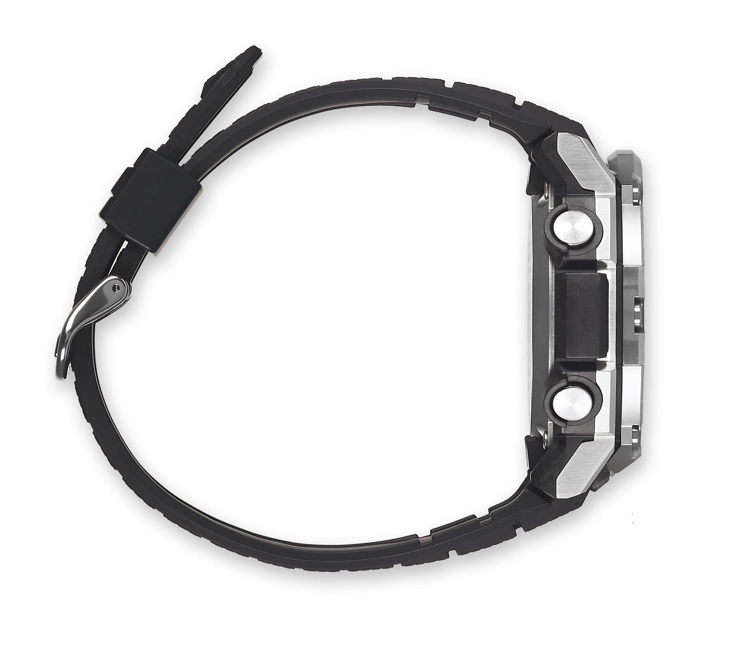 Корпус имеет структуру Carbon Core GuardCarbon Core Guard Новейшая структура корпуса, разработанная Casio. Полиуретановая пластина дополнительно усилена карбоновыми вставками, что придаёт специальную защиту от механических повреждений. Карбон отличается лёгкостью и прочностью., что говорит о повышенной ударопрочности. БезельБезельВнешний ободок, закрепляющий стекло. В спортивных часах так называется поворотное кольцо с делениями на циферблате, выполняет роль таймера – замеряет отрезки времени на шкале. Неподвижный безель – элемент декора. Однонаправленно вращающийся безель на дайверских часах позволяет фиксировать моменты погружения и выныривания на поверхность. изготовлен из стали 316L. Японский кварцевый механизм отличается высокой точностью хода 15 +/- секунд в месяц. Часы оснащены инновационной технологией , синхронизация со смартфоном происходит с помощью BluetoothBluetoothСовременная технология, позволяющая синхронизировать часы с телефоном и переносить данные. Часы с Bluetooth расширяют возможности вашего смартфона и делают его использование ещё более удобным.. Возможности: двойная автоматическая подсветка, мировое времяМировое время Полезное часовое усложнение, отображающее время в основных городах и известных областях по всему миру, оно связано с часовыми поясами, удобно для путешественников и бизнесменов. , будильник, хронографХронографФункция позволяет измерять отрезки времени с особой точностью: часы, минуты, секунды. Верным признаком хронографа является наличие на циферблате 3 дополнительных окошек-счётчиков., календарь, таймер.
