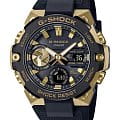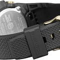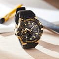 Эклектичное сочетание металлических и полимерных компонентов G-Steel в популярной цветовой гамме черного и золотого. Прочная конструкция сочетает в себе стильный дизайн с металлическим безелем с золотистым IP покрытием на фоне черной основы.