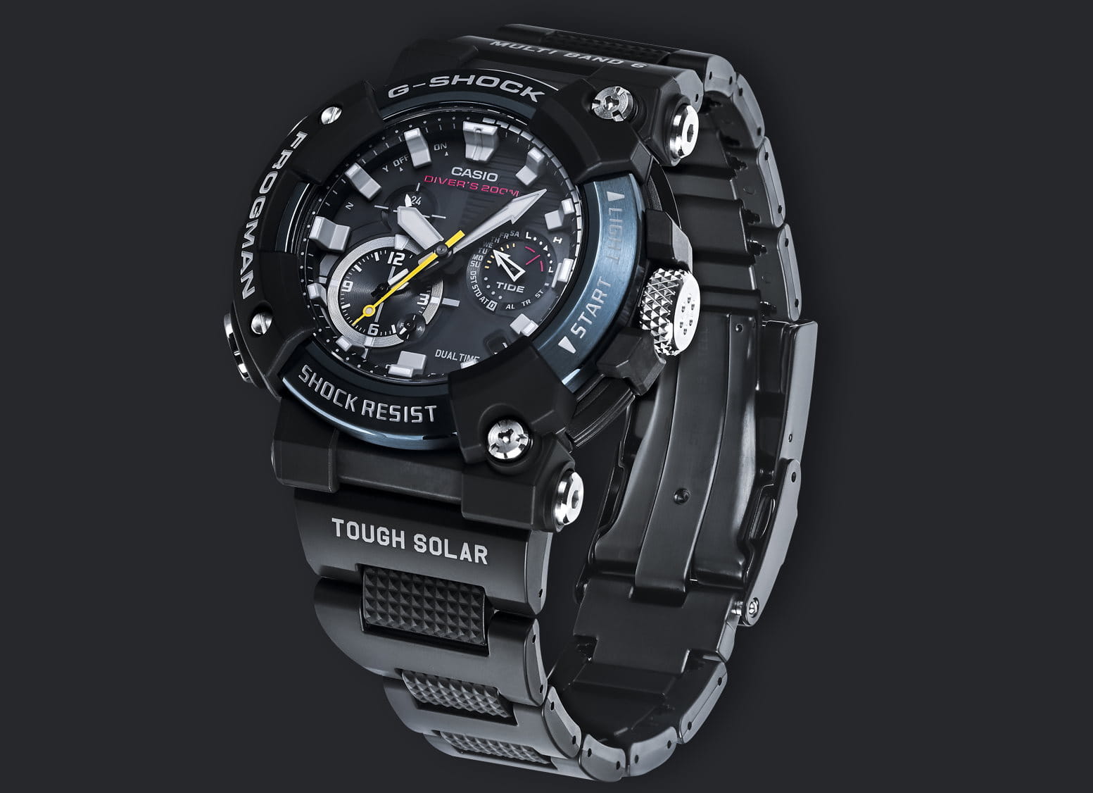Часы Casio G-Shock GWF-A1000C-1AER - модель из лимитированной серии Frogman для дайверов со стрелочной индикацией времени и ассиметричным дизайном циферблата, который является отличительной чертой линейки часов Frogman с момента ее запуска в 1993 году.