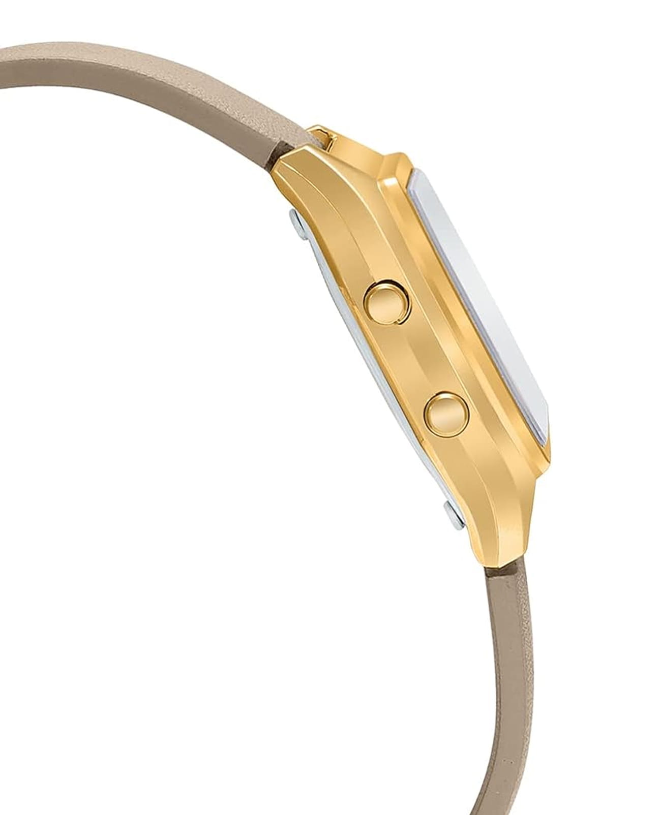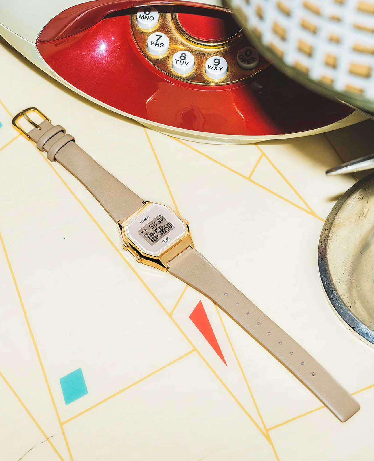 Японские женские часы-хронографХронографФункция позволяет измерять отрезки времени с особой точностью: часы, минуты, секунды. Верным признаком хронографа является наличие на циферблате 3 дополнительных окошек-счётчиков. с органическим стеклом Casio VintageLA680WEGL-5EF, кварцевый механизм с высокой точностью. Корпус часов изготовлен из пластика. СекундомерСекундомерСекундоме́р — прибор, способный измерять интервалы времени с точностью до долей секунды. с точностью измерения 1/100 секунды и измерением 1 ч. 12-ти и 24-х часовой формат времени. БудильникБудильникБуди́льник — часы, в заданный момент времени подающие звуковой, световой и/или в редких случаях другой сигнал., ежечасный сигнал. Автоматический календарь: число, день недели. Батарея рассчитана на 5 лет. Класс водозащиты: 30 метров, позволит защитить корпус от случайных брызг или капель дождя. Кожаный ремешок на стандартной застежке.