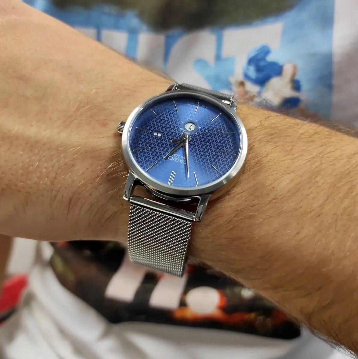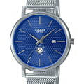 Японские мужские наручные часы с минеральным стекломМинеральное стеклоМинеральное стекло представляет собой искусственно выращенный минерал кварца. Такое стекло отличается особой устойчивостью к повреждениям и царапинам. Уступает по некоторым качествам сапфировому стеклу. Casio Collection MTP-B125M-2A, кварцевый механизм с высокой точностью. Класс водозащиты: 50 метров, позволит защитить корпус от случайных брызг или капель дождя. Корпус часов изготовлен из стали. Стальной браслет на раскладной застёжкеРаскладная застёжкаТакой тип застёжки используется только на браслетах из металла. Она никогда не раскрывается полностью, происходит разделение на 2 и более частей. Раскладывающая застёжка снизит вероятность потери часов к минимуму.. Окошко даты находится в положении 3 часа. Окошко дня недели находится в положении 6 часов.