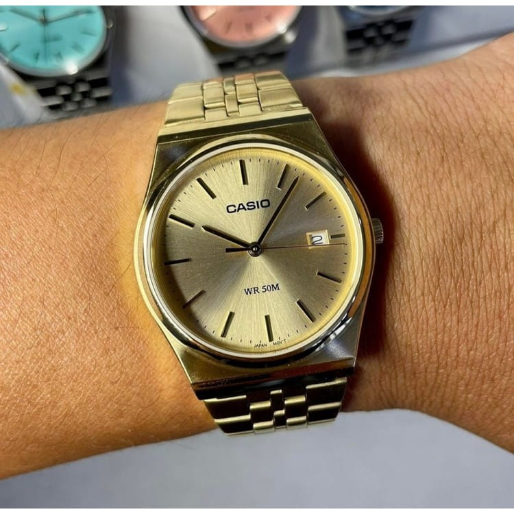 Японские мужские кварцевые часы с минеральным стекломМинеральное стеклоМинеральное стекло представляет собой искусственно выращенный минерал кварца. Такое стекло отличается особой устойчивостью к повреждениям и царапинам. Уступает по некоторым качествам сапфировому стеклу. Casio Collection MTP-B145G-9AVEF, кварцевый механизм с высокой точностью. Корпус и браслет часов изготовлены из нержавеющей стали. Окошко даты находится в положении 3 часа. Класс водозащиты: 50 метров, позволит защитить корпус от случайных брызг или капель дождя.