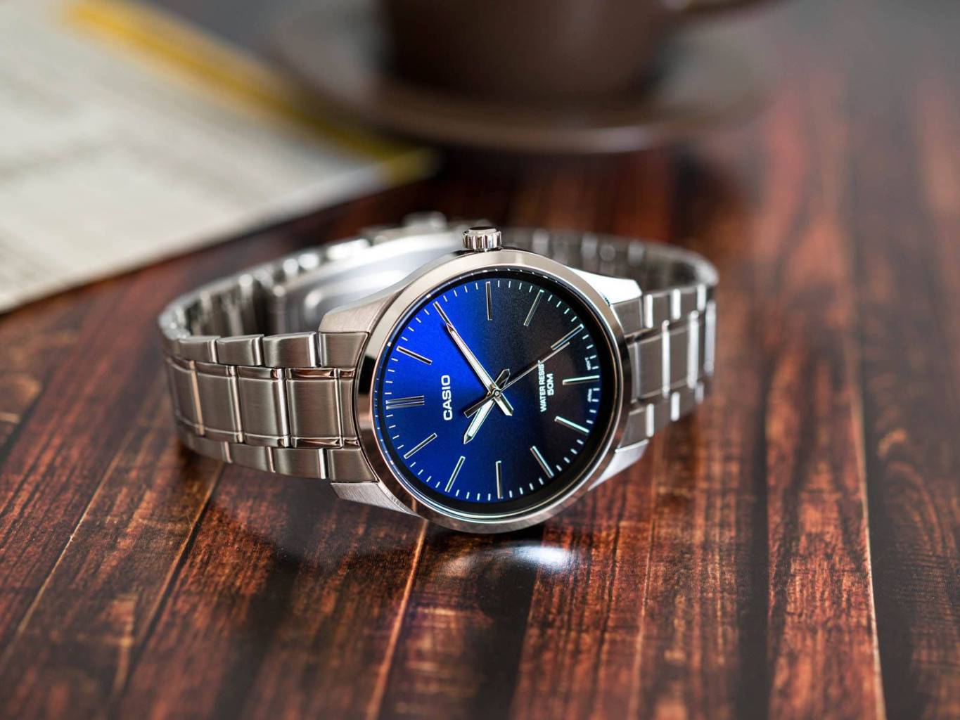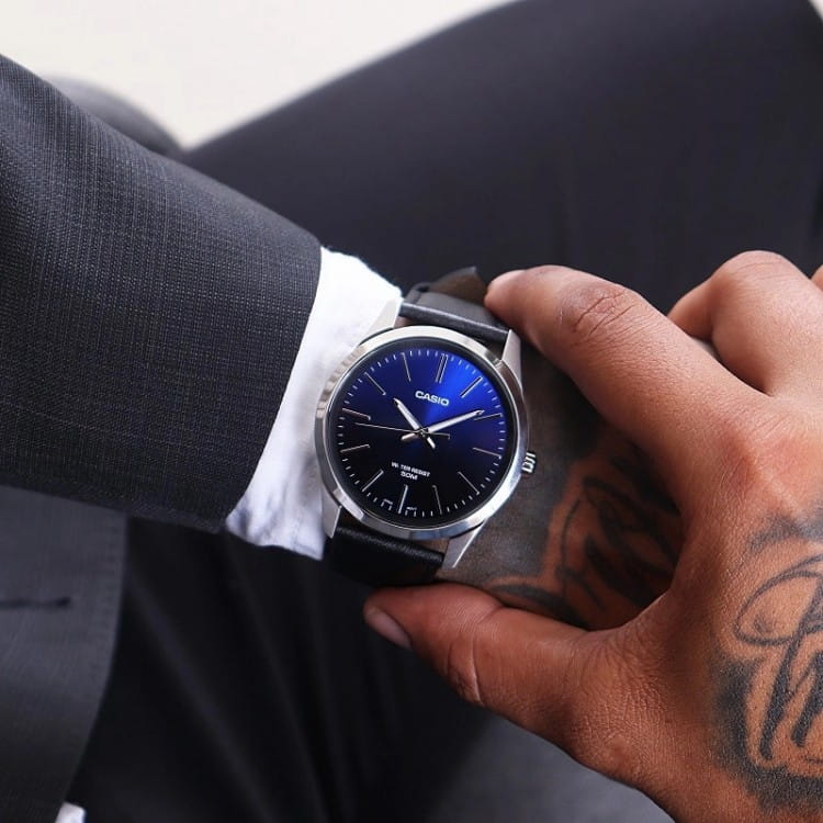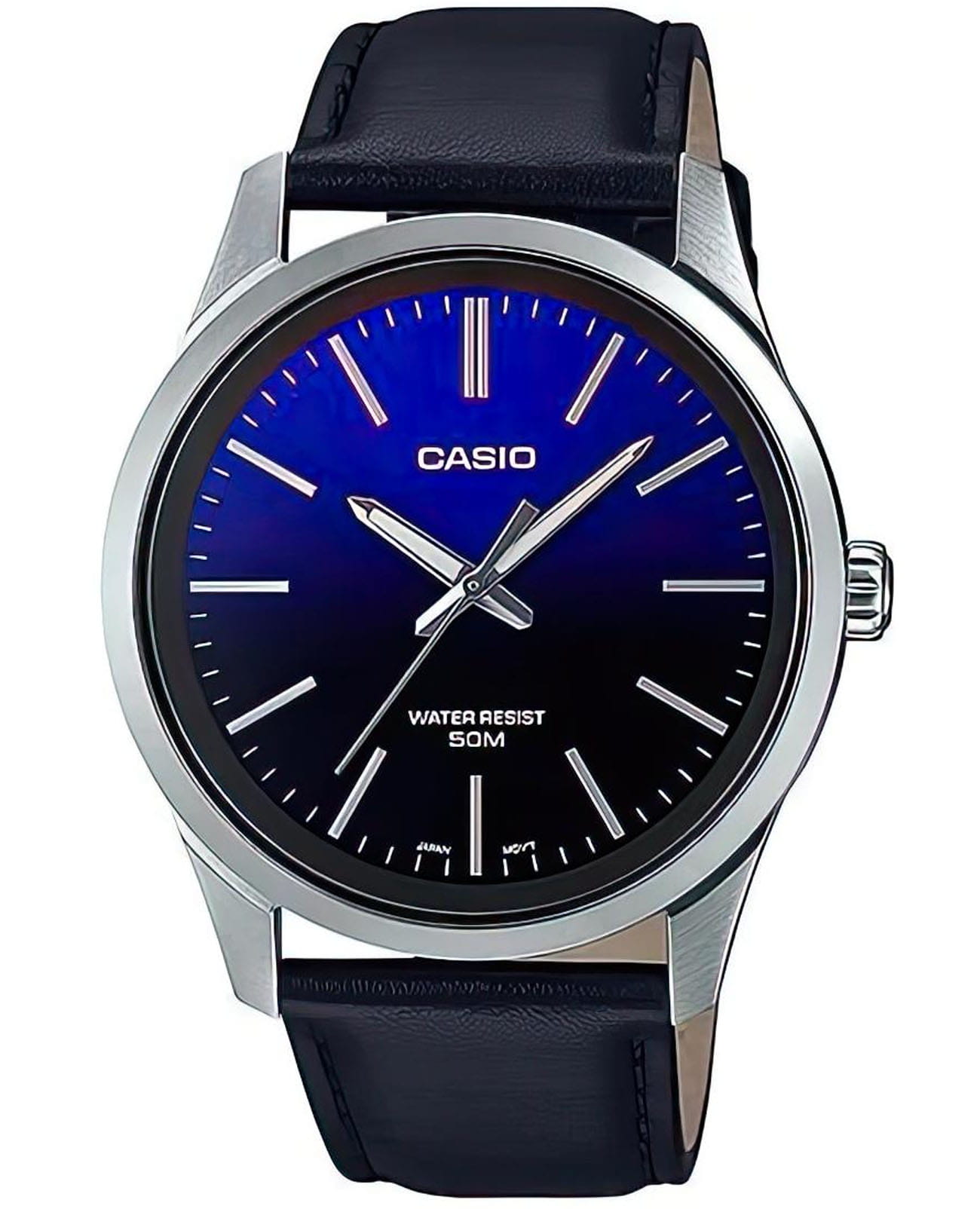 Японские мужские наручные часы с минеральным стекломМинеральное стеклоМинеральное стекло представляет собой искусственно выращенный минерал кварца. Такое стекло отличается особой устойчивостью к повреждениям и царапинам. Уступает по некоторым качествам сапфировому стеклу. Casio Collection MTP-E180L-2A, кварцевый механизм с высокой точностью. Окошко даты с увеличительным стеклом. Класс водозащиты: 50 метров, позволит защитить корпус от случайных брызг или капель дождя. Корпус часов изготовлен из стали. Стрелки с люминесцентным покрытиемЛюминесцентное покрытиеПозволяет считывать показания времени в темноте. Производители наносят на стрелки, часовые индексы, безель или поверхность циферблата светонакопительный состав, дающий холодное свечение.. Кожаный ремешок на стандартной застёжке.
