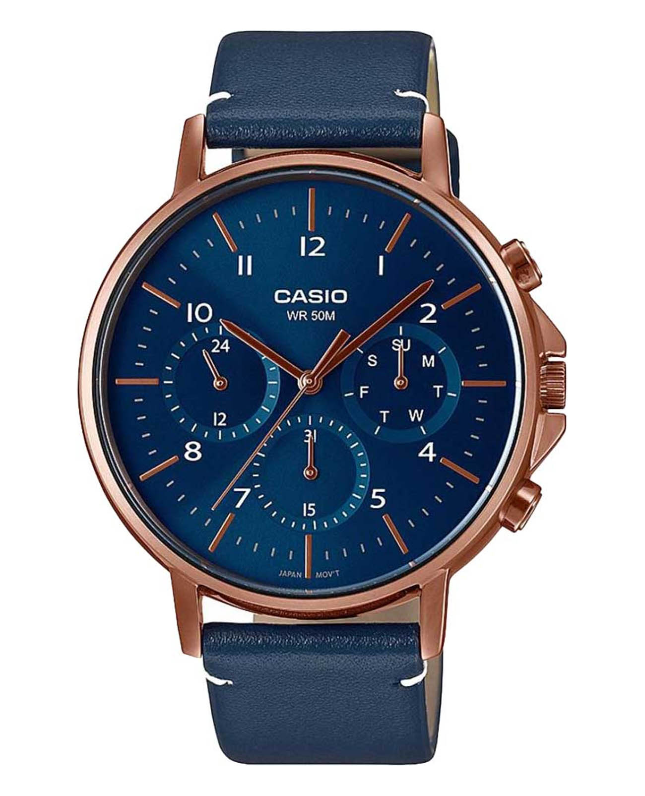 Японские мужские часы с минеральным стекломМинеральное стеклоМинеральное стекло представляет собой искусственно выращенный минерал кварца. Такое стекло отличается особой устойчивостью к повреждениям и царапинам. Уступает по некоторым качествам сапфировому стеклу. Casio Collection MTP-E321RL-2A, кварцевый механизм с высокой точностью. Корпус часов изготовлен из стали с IP-покрытиемIP-покрытиеМетод ионного напыления. Демонстрирует повышенную устойчивость к истиранию, окислению и химическим веществам. Под воздействием высокого давления и температуры около 1500°C молекулы металла надёжно соединяются с частицами корпуса часов.. 12-ти и 24-х часовой формат времени, число и день недели вынесены на отдельные циферблаты. Метки в виде штрихов и арабских цифр. Заводная головка с защитой. Батарейка рассчитана на 3 года. Класс водозащиты: 50 метров, позволит защитить корпус от случайных брызг или капель дождя. Кожаный ремешок на стандартной застёжке.