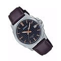 Японские мужские часы с минеральным стекломМинеральное стеклоМинеральное стекло представляет собой искусственно выращенный минерал кварца. Такое стекло отличается особой устойчивостью к повреждениям и царапинам. Уступает по некоторым качествам сапфировому стеклу. Casio Collection MTP-E720L-5A, кварцевый механизм с высокой точностью. Корпус часов изготовлен из стали. Стрелки с люминесцентным покрытиемЛюминесцентное покрытиеПозволяет считывать показания времени в темноте. Производители наносят на стрелки, часовые индексы, безель или поверхность циферблата светонакопительный состав, дающий холодное свечение.. Метки в виде штрихов. Окошко даты находится в положении 3 часа. Батарея рассчитана на 3 года. Заводная головка с защитой. Класс водозащиты: 50 метров, позволит защитить корпус от случайных брызг или капель дождя. Кожаный ремешок на стандартной застёжке.