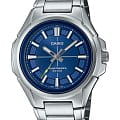 Японские мужские кварцевые часы с минеральным стекломМинеральное стеклоМинеральное стекло представляет собой искусственно выращенный минерал кварца. Такое стекло отличается особой устойчивостью к повреждениям и царапинам. Уступает по некоторым качествам сапфировому стеклу. Casio Collection MTP-RS100D-2A, кварцевый механизм с высокой точностью. Корпус часов изготовлен из нержавеющей стали. Питание от солнечной энергии. Время работы - 4 месяца. Циферблат с метками в виде штрихов выполнен по технологии Sunray (солнечные лучи). Циферблат с метками в виде штрихов. Стрелки и метки с люминесцентным покрытиемЛюминесцентное покрытиеПозволяет считывать показания времени в темноте. Производители наносят на стрелки, часовые индексы, безель или поверхность циферблата светонакопительный состав, дающий холодное свечение.. Заводная головка с защитой. Класс водозащиты: 50 метров, позволит защитить корпус от случайных брызг или капель дождя. Стальной браслет на раскладной застёжкеРаскладная застёжкаТакой тип застёжки используется только на браслетах из металла. Она никогда не раскрывается полностью, происходит разделение на 2 и более частей. Раскладывающая застёжка снизит вероятность потери часов к минимуму..