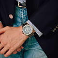 Дополнительные функции включают мировое времяМировое время Полезное часовое усложнение, отображающее время в основных городах и известных областях по всему миру, оно связано с часовыми поясами, удобно для путешественников и бизнесменов. , секундомерСекундомерСекундоме́р — прибор, способный измерять интервалы времени с точностью до долей секунды., таймер обратного отсчетаТаймерОтсчитывает секунды в обратном направлении в заданном интервале времени., будильникиБудильникБуди́льник — часы, в заданный момент времени подающие звуковой, световой и/или в редких случаях другой сигнал. и светодиодную подсветкуСветодиодная подсветкаСветодиодная или LED-подсветка обеспечивает появление яркого холодного свечения за счёт LED-элементов - маленьких лампочек. Они потребляют минимальное количество энергии, чаще всего можно встретить 1 светодиод, в нижней части циферблата.. Водонепроницаемость до 200 метров делает модель подходящей для плавания и активного отдыха.