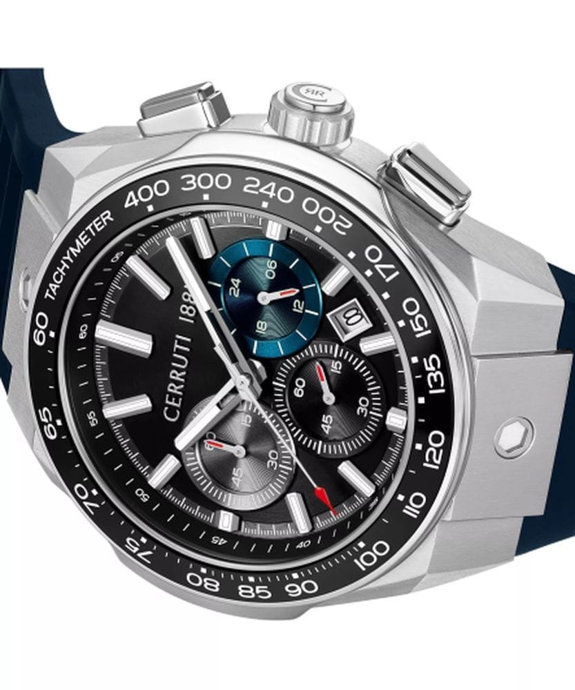 Cerruti 1881 CIWGO0050701 — спортивно-элегантные мужские часы, сочетающие динамику гоночного стиля с изысканным итальянским дизайном. Крупный корпус из нержавеющей стали с безелемБезельВнешний ободок, закрепляющий стекло. В спортивных часах так называется поворотное кольцо с делениями на циферблате, выполняет роль таймера – замеряет отрезки времени на шкале. Неподвижный безель – элемент декора. Однонаправленно вращающийся безель на дайверских часах позволяет фиксировать моменты погружения и выныривания на поверхность. с ip-покрытиемIP-покрытиеМетод ионного напыления. Демонстрирует повышенную устойчивость к истиранию, окислению и химическим веществам. Под воздействием высокого давления и температуры около 1500°C молекулы металла надёжно соединяются с частицами корпуса часов., на котором размещена шкала тахиметраТахиметрРазмеченная шкала, располагается на ободке или безеле часов. Тахиметр позволяет рассчитать скорость на определённом участке пути, расстояние измеряется в километрах или милях., подчёркивает технический характер модели. Глубокий циферблат акцентами и тремя счётчиками хронографаХронографФункция позволяет измерять отрезки времени с особой точностью: часы, минуты, секунды. Верным признаком хронографа является наличие на циферблате 3 дополнительных окошек-счётчиков. создаёт ощущение скорости и точности, а контрастные стрелки и метки с люминесцентным покрытиемЛюминесцентное покрытиеПозволяет считывать показания времени в темноте. Производители наносят на стрелки, часовые индексы, безель или поверхность циферблата светонакопительный состав, дающий холодное свечение. обеспечивают превосходную читаемость в любых условиях. Прочное минеральное стеклоМинеральное стеклоМинеральное стекло представляет собой искусственно выращенный минерал кварца. Такое стекло отличается особой устойчивостью к повреждениям и царапинам. Уступает по некоторым качествам сапфировому стеклу. защищает циферблат от повреждений, а мягкий силиконовый ремешок обеспечивает комфорт и надёжную посадку. Cerruti 1881 — идеальный выбор для мужчин, ценящих сочетание функциональности, спортивного темперамента и итальянского утончённого стиля.