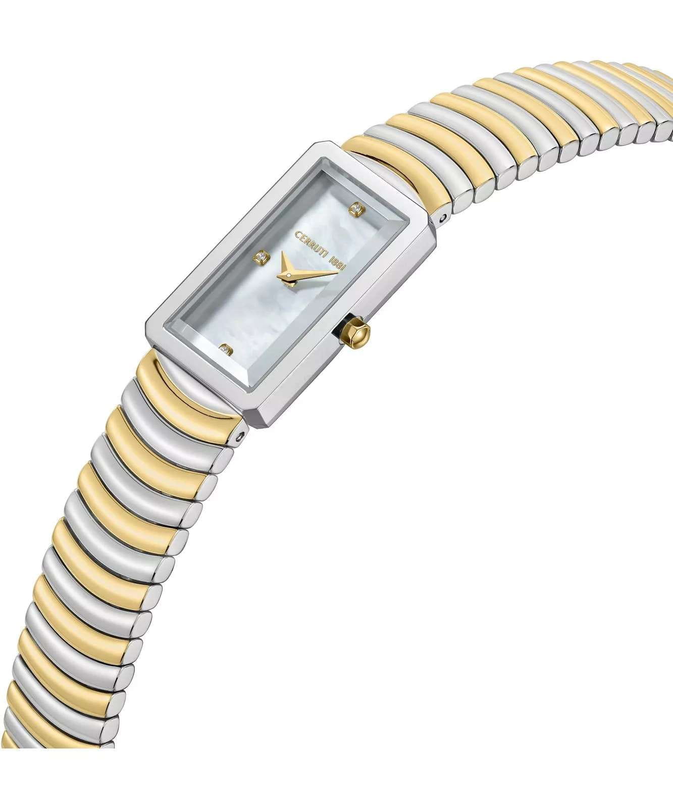 Женские кварцевые часы Cerruti 1881 Vallucciole CIWLG0086202 — миниатюрная элегантность с французским шармом. Корпус из нержавеющей стали 316L, размером 17 × 29 мм. Циферблат — белый перламутровый с точечными метками из кристаллов. Стекло — минеральноеМинеральное стеклоМинеральное стекло представляет собой искусственно выращенный минерал кварца. Такое стекло отличается особой устойчивостью к повреждениям и царапинам. Уступает по некоторым качествам сапфировому стеклу. с сапфировым покрытием. Браслет — стальной с частичным PVD-покрытиемPVDУльтратонкое покрытие наносится в технике вакуумного напыления, сочетает в себе нитрид титана особой прочности со слоем золота или оксида хрома. Несёт в себе декоративную или защитную функцию. на застёжке «бабочка» с кнопкамиЗастёжка "бабочка"Такой вид застёжки дополняется предохранителями, помогающими избежать случайного раскрытия браслета. Обладают изящным исполнением. . Водонепроницаемость 50 м. Идеальный выбор для тех, кто ценит французский дизайн и утончённую изящность.