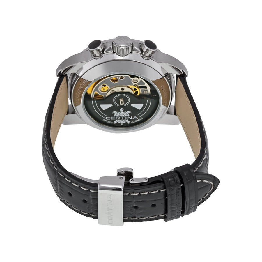 Швейцарские мужские механические часы Certina C0014271605700 – спортивный хронографХронографФункция позволяет измерять отрезки времени с особой точностью: часы, минуты, секунды. Верным признаком хронографа является наличие на циферблате 3 дополнительных окошек-счётчиков. в классическом стиле.