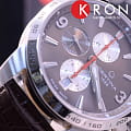 Хронограф, 6-ти часовой счётчик, 30-ти минутный счётчик, дата вынесена на 6 часов, секундная стрелка часов вынесена на 9 часов