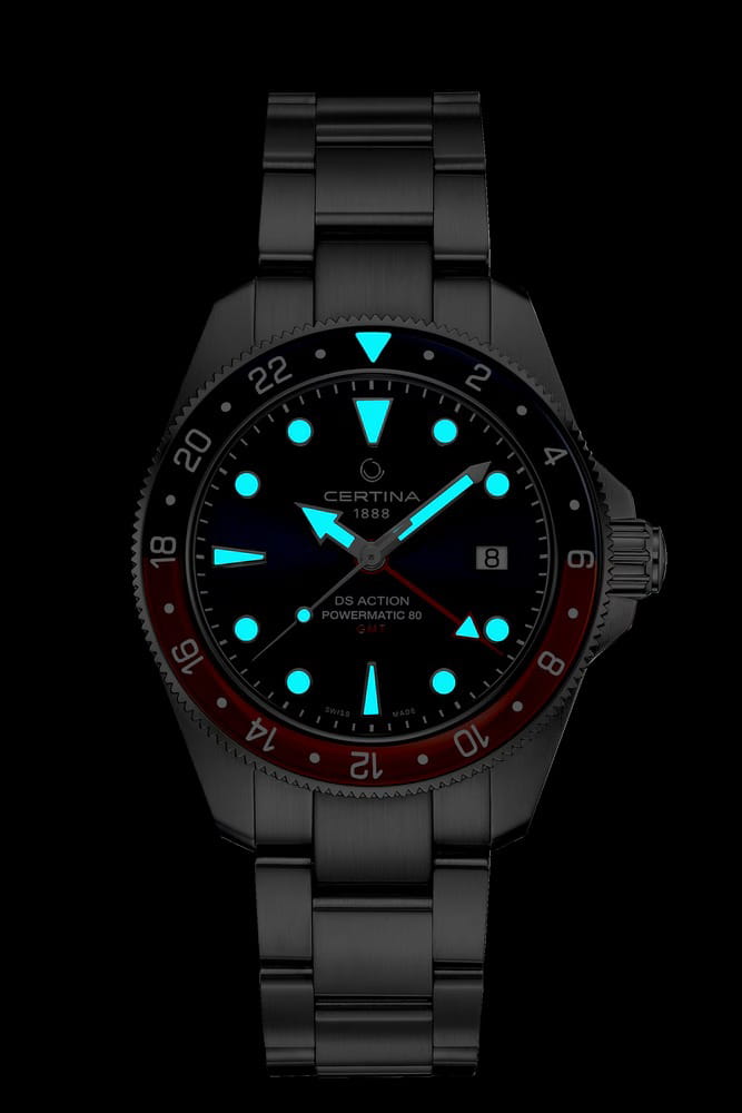 Часы DS Action GMT Powermatic 80, известные своей точностью и высокой надежностью, станут идеальным спутником в путешествиях. Благодаря отдельному 24-часовому дисплею следить за временем во втором часовом поясе стало проще, чем когда-либо.