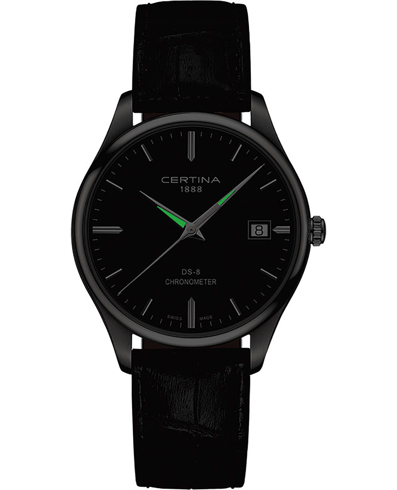 Стильный аксессуар в минималистичном оформлении охарактеризует вас как человека, который действительно разбирается в часах. Модель отличается повышенной точностью хода, это подтверждено официальным сертификатом хронометра COSCСертификат COSCОфициальный сертификат, подтверждающий то, что часы ходят с особо высокой точностью. Для получения документа часы подвергаются тестовым испытаниям, разработанным швейцарским институтом тестирования хронометров COSC. Допустимая норма для механических часов -4/+6 секунд в день, для кварцевых моделей +/- 0,07 секунд в день.. Часы обладают ударопрочным корпусомУдаропрочный корпусМеханизм заключён в корпус, выполненный из современных материалов, устойчивых к ударам, механическим повреждениям и падению с высоты: инновационный пластик, карбон, нержавеющая сталь, титан. и водонепроницаемостью до 10 бар - такие безупречные характеристики появились благодаря фирменной концепции DS ConceptDS ConceptDouble Security Concept, обозначает двойную надёжность и безупречную точность часов Certina. Двойная система защиты подразумевает обеспечение максимальной устойчивости к ударам и высоких показателей водонепроницаемости.. Швейцарский кварцевый механизм ETA F07.412 Precidrive™Precidrive™Инновационный кварцевый механизм Certina. Часы, оснащённые этим швейцарским калибром, приравниваются к точности к сертифицированным хронометрам, точность хода составляет +/-10 секунд в год.. Стекло из сапфира с антибликовым покрытием. Корпус из нержавеющей стали 316L. Чёрный ремешок из натуральной кожи. Индикация числа, функция EOLEOLПредставляет собой систему, уведомляющую владельца часов о необходимости замены элемента питания. За 2 недели до полного разряда батарейки секундная стрелка перестаёт ходить чётко и начинает перепрыгивать на 3-4 деления.. Диаметр корпуса: 40,2 мм.