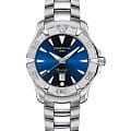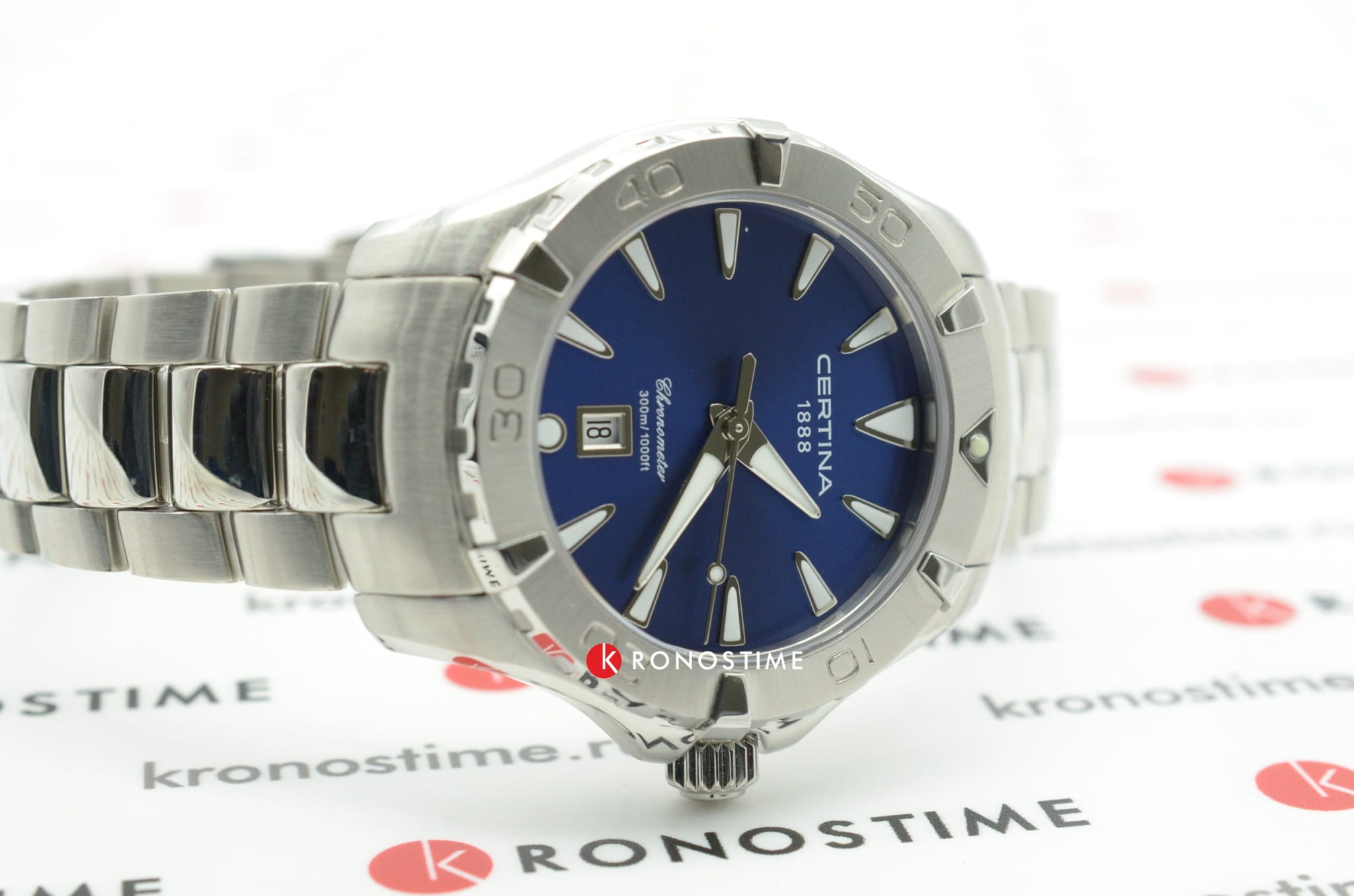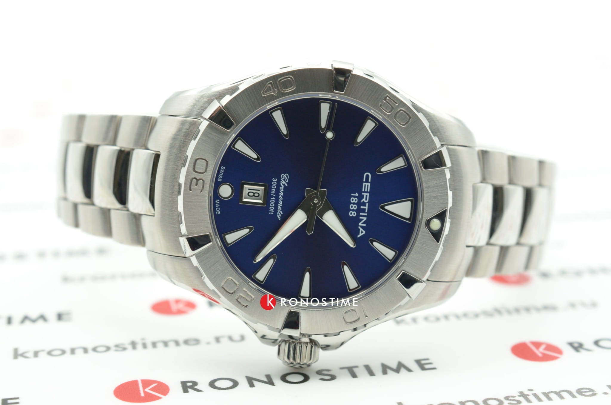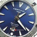 Компактный аксессуар создан по всем правилам дайверской тематики: вращающийся безель, крупная индикация времени, завинчивающаяся заводная головка и задняя крышка. Стильно смотрится сатинированный синий циферблат в сочетании с холодным блеском нержавеющей стали 316L.Часы оснащены швейцарским кварцевым калибром ETA F04.411 Precidrive™Precidrive™Инновационный кварцевый механизм Certina. Часы, оснащённые этим швейцарским калибром, приравниваются к точности к сертифицированным хронометрам, точность хода составляет +/-10 секунд в год., точность хода которого отмечена официальным сертификатом COSCСертификат COSCОфициальный сертификат, подтверждающий то, что часы ходят с особо высокой точностью. Для получения документа часы подвергаются тестовым испытаниям, разработанным швейцарским институтом тестирования хронометров COSC. Допустимая норма для механических часов -4/+6 секунд в день, для кварцевых моделей +/- 0,07 секунд в день.. Модель отличается максимальной водонепроницаемостью 300 метров, сапфировое стекло дополнено антибликовым покрытием. Функции: отображение даты, индикатор EOLEOLПредставляет собой систему, уведомляющую владельца часов о необходимости замены элемента питания. За 2 недели до полного разряда батарейки секундная стрелка перестаёт ходить чётко и начинает перепрыгивать на 3-4 деления.. Диаметр корпуса: 34,3 мм.