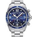 Дайверский хронографХронографФункция позволяет измерять отрезки времени с особой точностью: часы, минуты, секунды. Верным признаком хронографа является наличие на циферблате 3 дополнительных окошек-счётчиков. в сине-серебристом исполнении станет идеальным завершением делового, повседневного образа. Аксессуар дополнен безелемБезельВнешний ободок, закрепляющий стекло. В спортивных часах так называется поворотное кольцо с делениями на циферблате, выполняет роль таймера – замеряет отрезки времени на шкале. Неподвижный безель – элемент декора. Однонаправленно вращающийся безель на дайверских часах позволяет фиксировать моменты погружения и выныривания на поверхность. из анодированного алюминия, что облегчает конструкцию часов. Модель сделана из хирургической стали 316L, востребованной благодаря прочности и устойчивости к коррозии. Точность хода швейцарского автоматического механизма G10.212 AA PRECIDRIVEприравнивается к хронометрической, что подтверждено сертификатом COSCСертификат COSCОфициальный сертификат, подтверждающий то, что часы ходят с особо высокой точностью. Для получения документа часы подвергаются тестовым испытаниям, разработанным швейцарским институтом тестирования хронометров COSC. Допустимая норма для механических часов -4/+6 секунд в день, для кварцевых моделей +/- 0,07 секунд в день.. Улучшению читаемости показателей в солнечные дни способствует антибликовое покрытие сапфирового стекла. Максимальная водостойкость 300 метров. Концепция DSDS ConceptDouble Security Concept, обозначает двойную надёжность и безупречную точность часов Certina. Двойная система защиты подразумевает обеспечение максимальной устойчивости к ударам и высоких показателей водонепроницаемости.. Люминесцентная подсветкаЛюминесцентное покрытиеПозволяет считывать показания времени в темноте. Производители наносят на стрелки, часовые индексы, безель или поверхность циферблата светонакопительный состав, дающий холодное свечение.. Секундомер, отображение даты. Диаметр корпуса: 43 мм.