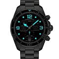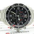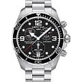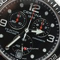 Дайверский хронографХронографФункция позволяет измерять отрезки времени с особой точностью: часы, минуты, секунды. Верным признаком хронографа является наличие на циферблате 3 дополнительных окошек-счётчиков. в чёрно-серебристом исполнении станет идеальным завершением делового, повседневного образа. Аксессуар дополнен безелемБезельВнешний ободок, закрепляющий стекло. В спортивных часах так называется поворотное кольцо с делениями на циферблате, выполняет роль таймера – замеряет отрезки времени на шкале. Неподвижный безель – элемент декора. Однонаправленно вращающийся безель на дайверских часах позволяет фиксировать моменты погружения и выныривания на поверхность. из анодированного алюминия, что облегчает конструкцию часов. Модель сделана из хирургической стали 316L, востребованной благодаря прочности и устойчивости к коррозии. Точность хода швейцарского механизма G10.212 AA PRECIDRIVE приравнивается к хронометрической, что подтверждено сертификатом COSCСертификат COSCОфициальный сертификат, подтверждающий то, что часы ходят с особо высокой точностью. Для получения документа часы подвергаются тестовым испытаниям, разработанным швейцарским институтом тестирования хронометров COSC. Допустимая норма для механических часов -4/+6 секунд в день, для кварцевых моделей +/- 0,07 секунд в день.. Улучшению читаемости показателей в солнечные дни способствует антибликовое покрытие сапфирового стекла. Максимальная водостойкость 300 метров. Концепция DSDS ConceptDouble Security Concept, обозначает двойную надёжность и безупречную точность часов Certina. Двойная система защиты подразумевает обеспечение максимальной устойчивости к ударам и высоких показателей водонепроницаемости.. Люминесцентная подсветкаЛюминесцентное покрытиеПозволяет считывать показания времени в темноте. Производители наносят на стрелки, часовые индексы, безель или поверхность циферблата светонакопительный состав, дающий холодное свечение.. Секундомер, отображение даты. Диаметр корпуса: 43 мм.