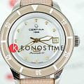 Модель Certina C036.207.18.116.00 из коллекции DS PH200M сочетает в себе элегантный дизайн и высокие технические характеристики. Корпус диаметром 39 мм выполнен из нержавеющей стали 316L, обеспечивая прочность и устойчивость к коррозии. Циферблат из белого перламутра украшен одиннадцатью бриллиантами и дополнен стрелками и индексами с покрытием из розового золота, покрытыми люминесцентным покрытиемЛюминесцентное покрытиеПозволяет считывать показания времени в темноте. Производители наносят на стрелки, часовые индексы, безель или поверхность циферблата светонакопительный состав, дающий холодное свечение. для отличной читаемости в темноте.