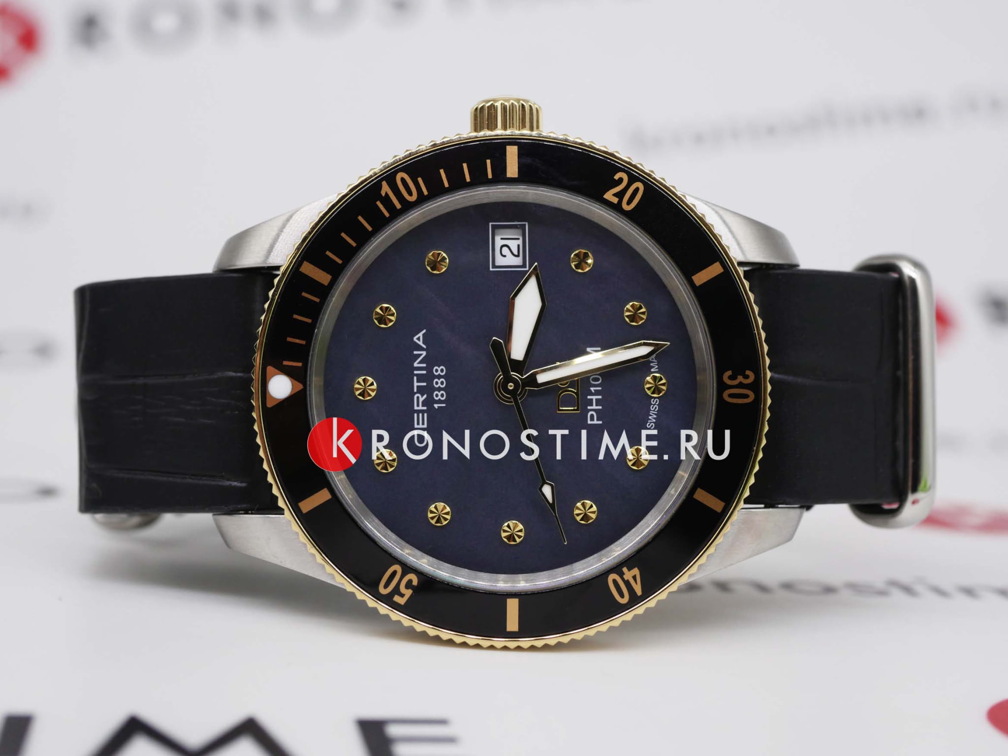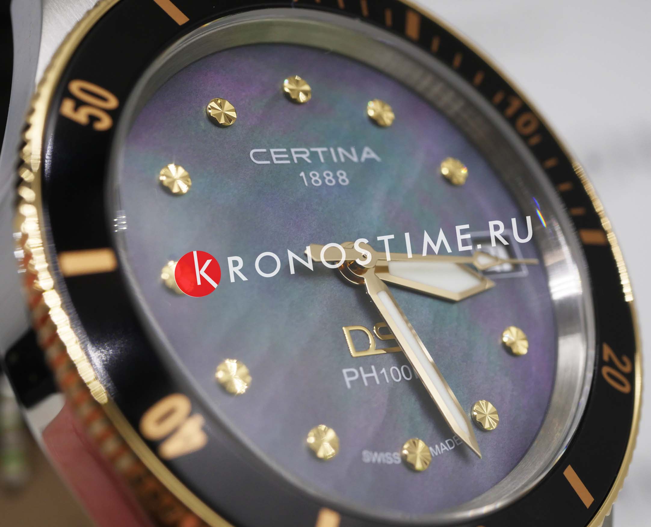 Certina DS PH100M Lady C044.210.26.051.00 – часы для поклонников ярких аксессуаров. Корпус изготовлен из высококачественной нержавеющей стали 316L с . Под твердым сапфировым стекломСапфировое стеклоПрочный и надёжный материал из кристалла сапфира синтетического происхождения, характеризующийся особой твёрдостью и устойчивостью к царапинам и повреждениям. с антибликовым покрытиемАнтибликовое покрытиеСлой оксида металла в 0,13-0,3 микрон, благодаря которому стекло часов не бликует и не отражает свет. Антибликовое покрытие уменьшает отражение света в 10 раз, обеспечивая отличную читаемость показателей циферблата. находится бирюзовый циферблат на котором вы найдете окошко даты в положении 3 часа, а также маркировку, покрытую люминесцентным покрытиемЛюминесцентное покрытиеПозволяет считывать показания времени в темноте. Производители наносят на стрелки, часовые индексы, безель или поверхность циферблата светонакопительный состав, дающий холодное свечение. Super-LumiNova. Класс водозащиты: 100 метров, позволит плавать, нырять и заниматься другими водными видами спорта. Кожаный ремешок. БезельБезельВнешний ободок, закрепляющий стекло. В спортивных часах так называется поворотное кольцо с делениями на циферблате, выполняет роль таймера – замеряет отрезки времени на шкале. Неподвижный безель – элемент декора. Однонаправленно вращающийся безель на дайверских часах позволяет фиксировать моменты погружения и выныривания на поверхность. из нержавеющей стали с PVD-покрытиемPVDУльтратонкое покрытие наносится в технике вакуумного напыления, сочетает в себе нитрид титана особой прочности со слоем золота или оксида хрома. Несёт в себе декоративную или защитную функцию.