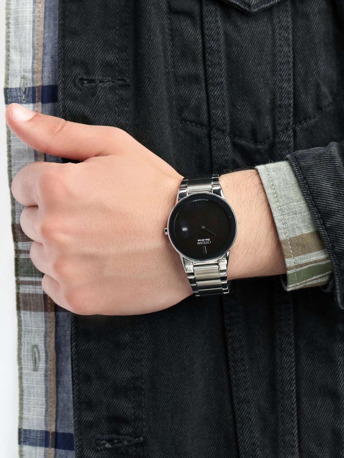 Часы Citizen AU1060-51E представлены в строгом и элегантном дизайне, идеально подходящем для делового стиля. Корпус и браслет выполнены из высококачественной нержавеющей стали, что обеспечивает долговечность и презентабельный внешний вид. Циферблат с минималистичным оформлением подчеркивает сдержанность модели, а окошко даты удобно расположено в положении 3 часа. Надежный кварцевый механизм Citizen J165 работает на инновационной системе Eco-Drive, которая питается от солнечной энергии и не требует замены батарейки, обеспечивая запас хода до 270 дней. Часы оснащены функцией индикации заряда EOLEOLПредставляет собой систему, уведомляющую владельца часов о необходимости замены элемента питания. За 2 недели до полного разряда батарейки секундная стрелка перестаёт ходить чётко и начинает перепрыгивать на 3-4 деления. и защитой от перезаряда. Минеральное стеклоМинеральное стеклоМинеральное стекло представляет собой искусственно выращенный минерал кварца. Такое стекло отличается особой устойчивостью к повреждениям и царапинам. Уступает по некоторым качествам сапфировому стеклу. надежно защищает циферблат от случайных повреждений, а водозащита уровня WR30 позволяет не снимать часы при случайном контакте с водой. Неподвижный безельБезельВнешний ободок, закрепляющий стекло. В спортивных часах так называется поворотное кольцо с делениями на циферблате, выполняет роль таймера – замеряет отрезки времени на шкале. Неподвижный безель – элемент декора. Однонаправленно вращающийся безель на дайверских часах позволяет фиксировать моменты погружения и выныривания на поверхность. с IP-покрытиемIP-покрытиеМетод ионного напыления. Демонстрирует повышенную устойчивость к истиранию, окислению и химическим веществам. Под воздействием высокого давления и температуры около 1500°C молекулы металла надёжно соединяются с частицами корпуса часов.. Диаметр корпуса составляет 40 мм, что делает модель универсальным аксессуаром для любого случая. Раскладная застёжкаРаскладная застёжкаТакой тип застёжки используется только на браслетах из металла. Она никогда не раскрывается полностью, происходит разделение на 2 и более частей. Раскладывающая застёжка снизит вероятность потери часов к минимуму. на браслете обеспечивает дополнительный комфорт при носке.