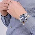 Часы Citizen AW1525-81L – это стильная и надежная модель японского производства, идеально подходящая для активного образа жизни. Корпус выполнен из высококачественной нержавеющей стали, в то время как на безельБезельВнешний ободок, закрепляющий стекло. В спортивных часах так называется поворотное кольцо с делениями на циферблате, выполняет роль таймера – замеряет отрезки времени на шкале. Неподвижный безель – элемент декора. Однонаправленно вращающийся безель на дайверских часах позволяет фиксировать моменты погружения и выныривания на поверхность. нанесено черное и синее PVD-покрытиеPVDУльтратонкое покрытие наносится в технике вакуумного напыления, сочетает в себе нитрид титана особой прочности со слоем золота или оксида хрома. Несёт в себе декоративную или защитную функцию., браслет также стальной. Синий циферблат украшен метками в виде штрихов и оснащен календарем с окошком даты. Защиту от повреждений обеспечивает прочное минеральное стеклоМинеральное стеклоМинеральное стекло представляет собой искусственно выращенный минерал кварца. Такое стекло отличается особой устойчивостью к повреждениям и царапинам. Уступает по некоторым качествам сапфировому стеклу., а водонепроницаемость до 100 метров позволяет не снимать часы во время плавания и занятий спортом. Внутри установлен надежный кварцевый механизм Citizen J810 с инновационной системой Eco-Drive, которая питается от солнечной энергии и не требует замены батарейки, обеспечивая запас хода до 240 дней. Стрелки и часовые метки с люминесцентным покрытиемЛюминесцентное покрытиеПозволяет считывать показания времени в темноте. Производители наносят на стрелки, часовые индексы, безель или поверхность циферблата светонакопительный состав, дающий холодное свечение. обеспечивают отличную читаемость даже в темноте. Функция индикации заряда EOLEOLПредставляет собой систему, уведомляющую владельца часов о необходимости замены элемента питания. За 2 недели до полного разряда батарейки секундная стрелка перестаёт ходить чётко и начинает перепрыгивать на 3-4 деления. подскажет, когда потребуется подзарядка. Корпус диаметром 45,9 мм, толщина 11,8 мм, ширина браслета 22 мм, вес модели составляет 160 граммов. Завинчивающаяся задняя крышка украшена фирменной гравировкой Eco-Drive, а заводная головка оснащена защитой. Надежная раскладная застёжкаРаскладная застёжкаТакой тип застёжки используется только на браслетах из металла. Она никогда не раскрывается полностью, происходит разделение на 2 и более частей. Раскладывающая застёжка снизит вероятность потери часов к минимуму. браслета с системой блокировки гарантирует комфортное и безопасное ношение.