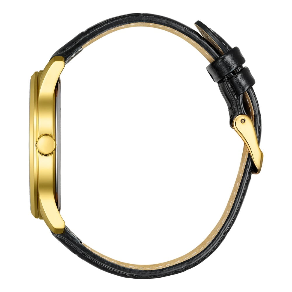 Часы Citizen BH5002-02E сочетают в себе японское качество, современный дизайн и надежность кварцевого механизма Citizen G032. Круглый корпус диаметром 42 мм выполнен из прочной нержавеющей стали с элегантным золотистым IP-покрытиемIP-покрытиеМетод ионного напыления. Демонстрирует повышенную устойчивость к истиранию, окислению и химическим веществам. Под воздействием высокого давления и температуры около 1500°C молекулы металла надёжно соединяются с частицами корпуса часов., что обеспечивает долговечность и стильный внешний вид. Черный циферблат украшен метками в виде штрихов и выполнен по технологии Sunray, создающей эффект солнечных лучей при попадании света. Минеральное стеклоМинеральное стеклоМинеральное стекло представляет собой искусственно выращенный минерал кварца. Такое стекло отличается особой устойчивостью к повреждениям и царапинам. Уступает по некоторым качествам сапфировому стеклу. защищает циферблат от царапин и повреждений. Рифленая заводная головка подчеркивает элегантность и практичность модели. Кожаный ремешок шириной 22 мм с классической застежкой обеспечивает комфортное ношение и подходит для любого случая. Водозащита до 50 метров позволяет не бояться случайных брызг и дождя.