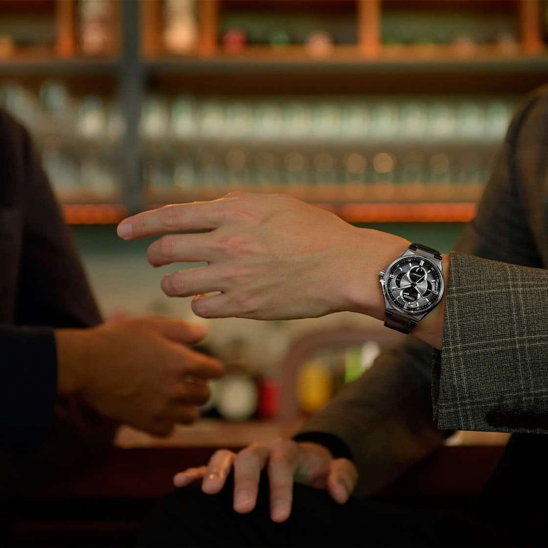 Японские часы Citizen BU0060-09H сочетают в себе современные технологии и элегантный дизайн. Модель оснащена надежным кварцевым механизмом с инновационной системой Eco-Drive, которая работает на солнечной энергии и не требует замены батарейки, обеспечивая запас хода до 180 дней. Дополнительные функции включают индикацию даты, дня недели, месяца, а также фаз Луны. Специальный индикатор заряда и система предотвращения перезарядки гарантируют стабильную работу часов. Корпус выполнен из легкого и прочного титана диаметром 44 мм, а устойчивое к царапинам сапфировое стеклоСапфировое стеклоПрочный и надёжный материал из кристалла сапфира синтетического происхождения, характеризующийся особой твёрдостью и устойчивостью к царапинам и повреждениям. надежно защищает циферблат. Водостойкость уровня WR 100 позволяет использовать часы при плавании и в повседневной жизни. Черный кожаный ремешок с раскладной застёжкойРаскладная застёжкаТакой тип застёжки используется только на браслетах из металла. Она никогда не раскрывается полностью, происходит разделение на 2 и более частей. Раскладывающая застёжка снизит вероятность потери часов к минимуму. подчеркивает солидный внешний вид модели. Стрелки с люминесцентным покрытиемЛюминесцентное покрытиеПозволяет считывать показания времени в темноте. Производители наносят на стрелки, часовые индексы, безель или поверхность циферблата светонакопительный состав, дающий холодное свечение. позволяют легко считывать время даже в условиях недостаточного освещения.