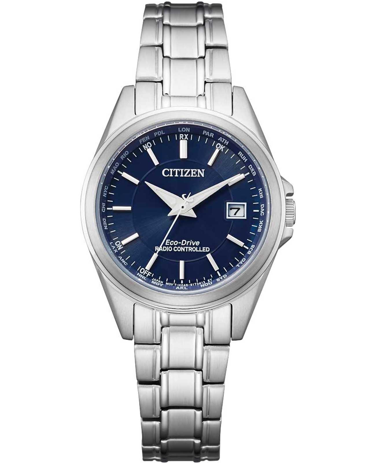 Citizen EC1180-81L — стильные и функциональные часы для современных леди, созданные в Японии. Модель оснащена точным кварцевым механизмом с калибром Citizen H246 и инновационной системой Eco-Drive, которая обеспечивает питание от солнечной энергии и избавляет от необходимости замены батарейки, а запас хода составляет до 180 дней. Для дополнительного удобства предусмотрены функции индикации заряда EOLEOLПредставляет собой систему, уведомляющую владельца часов о необходимости замены элемента питания. За 2 недели до полного разряда батарейки секундная стрелка перестаёт ходить чётко и начинает перепрыгивать на 3-4 деления., сохранения энергии и предотвращения перезарядки, а при включенной функции сохранения энергии часы способны работать до трёх лет. Корпус и браслет выполнены из высококачественной нержавеющей стали, а синий циферблат с изысканным солнечным узором Sunray украшен метками в виде штрихов и защищён сапфировым стекломСапфировое стеклоПрочный и надёжный материал из кристалла сапфира синтетического происхождения, характеризующийся особой твёрдостью и устойчивостью к царапинам и повреждениям. с высокой устойчивостью к царапинам. Стрелки с люминесцентным покрытиемЛюминесцентное покрытиеПозволяет считывать показания времени в темноте. Производители наносят на стрелки, часовые индексы, безель или поверхность циферблата светонакопительный состав, дающий холодное свечение. обеспечивают отличную читаемость времени даже в темное время суток. Окошко даты удобно расположено на отметке 3 часа, а вечный календарьВечный календарьКлассическое часовое усложнение, представляющее собой календарь, рассчитанный на несколько лет вперёд (стандартно – до 2099 года). Определяет текущую дату, день недели, месяц. всегда показывает актуальное число. Часы автоматически принимают сигналы от радиовышек по всему миру и корректируют время с высокой точностью — поддерживается синхронизация в Европе, США, Японии и Китае, а также мировое время для 24 городов и автоматический переход на зимнее и летнее время. Диаметр корпуса составляет 29,3 мм, толщина — 8,4 мм, вес — всего 67 грамм, что делает модель особенно комфортной для повседневного ношения. Заводная головка снабжена защитой, а браслет оборудован удобной раскладной застёжкойРаскладная застёжкаТакой тип застёжки используется только на браслетах из металла. Она никогда не раскрывается полностью, происходит разделение на 2 и более частей. Раскладывающая застёжка снизит вероятность потери часов к минимуму.. Надёжная водозащита 100WR позволяет использовать часы даже при плавании.