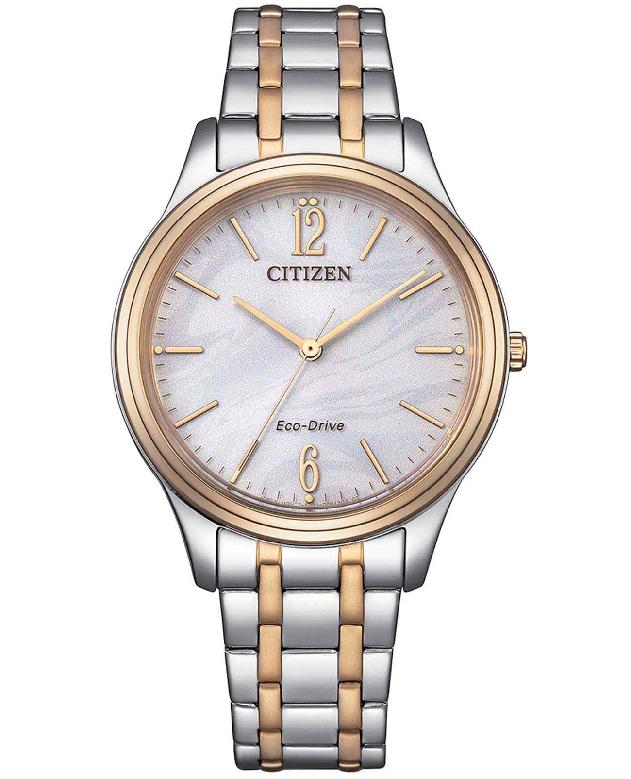 Часы Citizen EM0416-78A – это элегантная модель, сочетающая современный дизайн и передовые технологии. Корпус выполнен из высококачественной нержавеющей стали, а безельБезельВнешний ободок, закрепляющий стекло. В спортивных часах так называется поворотное кольцо с делениями на циферблате, выполняет роль таймера – замеряет отрезки времени на шкале. Неподвижный безель – элемент декора. Однонаправленно вращающийся безель на дайверских часах позволяет фиксировать моменты погружения и выныривания на поверхность. и браслет (частично) с золотистым IP-покрытиемIP-покрытиеМетод ионного напыления. Демонстрирует повышенную устойчивость к истиранию, окислению и химическим веществам. Под воздействием высокого давления и температуры около 1500°C молекулы металла надёжно соединяются с частицами корпуса часов., что придаёт аксессуару утончённость и стиль. Прочное минеральное стеклоМинеральное стеклоМинеральное стекло представляет собой искусственно выращенный минерал кварца. Такое стекло отличается особой устойчивостью к повреждениям и царапинам. Уступает по некоторым качествам сапфировому стеклу. защищает циферблат от царапин, Белый циферблат украшен арабскими цифрами и штрихами, а также защищён прочным кристаллическим стеклом. Диаметр корпуса составляет 34 мм, высота – 7 мм, что обеспечивает комфортную посадку на запястье. Часы оснащены кварцевым механизмом калибра Citizen E031 с технологией Eco-Drive, благодаря которой подзарядка происходит от любого источника света, а запас хода достигает 180 дней без дополнительной подзарядки. Функция индикатора разряда батареи напомнит о необходимости подзарядки, а точность хода составляет ±15 секунд в месяц. Водонепроницаемость до 5 бар позволяет не беспокоиться о случайных брызгах и дождях. Браслет оснащён удобной раскладной застёжкойРаскладная застёжкаТакой тип застёжки используется только на браслетах из металла. Она никогда не раскрывается полностью, происходит разделение на 2 и более частей. Раскладывающая застёжка снизит вероятность потери часов к минимуму.. Лёгкий вес – всего 70 грамм – делает часы практически незаметными на руке, а длина браслета 330 мм позволит подогнать его под нужный размер. аксессуаром на каждый день.