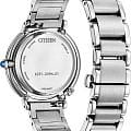 Часы Citizen EM1090-60D – это элегантная модель, созданная в Японии и сочетающая в себе современные технологии и изысканный дизайн. Надежный кварцевый механизм Citizen E031 с инновационной системой Eco-Drive работает от солнечной энергии и не требует замены батарейки, обеспечивая запас хода до 180 дней. Корпус часов выполнен из нержавеющей стали и украшен тремя кристаллами, что придает аксессуару особое сияние. Перламутровый голубой циферблат с лаконичными метками защищен выпуклым сапфировым стекломСапфировое стеклоПрочный и надёжный материал из кристалла сапфира синтетического происхождения, характеризующийся особой твёрдостью и устойчивостью к царапинам и повреждениям., устойчивым к царапинам. Заводная головка декорирована камнем в форме кабошона, а задняя крышка закреплена на четырех винтах. Стальной браслет оснащен застежкой «бабочка»Застёжка "бабочка"Такой вид застёжки дополняется предохранителями, помогающими избежать случайного раскрытия браслета. Обладают изящным исполнением. и системой быстрой замены, что позволяет легко менять стиль часов в зависимости от вашего настроения. В комплекте также идет сменный черный ремешок с такой же застежкой. Водозащита 50WR позволяет не беспокоиться о случайном контакте с водой. Компактные размеры корпуса (диаметр 31,2 мм, толщина 7,8 мм, вес 71 г) обеспечивают комфортное ношение каждый день. Эти часы станут великолепным дополнением к любому образу и подчеркнут вашу индивидуальность.