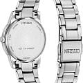 Часы Citizen Eco-Drive EW2318-73E — это стильная модель, сочетающая в себе утонченную классику и современные технологии. Корпус и браслет изготовлены из прочной нержавеющей стали, что обеспечивает не только износостойкость, но и элегантный внешний вид. Циферблат отличается лаконичным оформлением и защищён надёжным сапфировым стекломСапфировое стеклоПрочный и надёжный материал из кристалла сапфира синтетического происхождения, характеризующийся особой твёрдостью и устойчивостью к царапинам и повреждениям., устойчивым к царапинам. Часы оснащены инновационной системой Eco-Drive, которая позволяет заряжаться от любого источника света и не требует замены батарейки, а запас энергии составляет до 180 дней. Механизм Citizen E011 гарантирует точность хода, а функция индикации заряда EOLEOLПредставляет собой систему, уведомляющую владельца часов о необходимости замены элемента питания. За 2 недели до полного разряда батарейки секундная стрелка перестаёт ходить чётко и начинает перепрыгивать на 3-4 деления. своевременно подскажет о необходимости подзарядки. Водозащита до 50 метров обеспечивает дополнительную практичность и защищает механизм от влаги при повседневном использовании. Стальной браслет на раскладной застёжкеРаскладная застёжкаТакой тип застёжки используется только на браслетах из металла. Она никогда не раскрывается полностью, происходит разделение на 2 и более частей. Раскладывающая застёжка снизит вероятность потери часов к минимуму. обеспечивает надёжность и комфорт в течение всего дня. Диаметр корпуса составляет 27,5 мм, а толщина — 7,4 мм, благодаря чему часы выглядят изящно и подходят для любого случая.