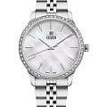 Женские наручные часы Cover Saraya CO206.01 сочетают в себе элегантный дизайн и надежность современных технологий. Модель обладает круглым корпусом диаметром 36 мм, изготовленным из нержавеющей стали, что обеспечивает высокую устойчивость к внешним воздействиям. Корпус декорирован кристаллами Swarowsky, которые придают часам особый шик и неповторимый вид. Для защиты используется сапфировое стеклоСапфировое стеклоПрочный и надёжный материал из кристалла сапфира синтетического происхождения, характеризующийся особой твёрдостью и устойчивостью к царапинам и повреждениям., обеспечивающее прочную защиту от царапин. Браслет выполнен из нержавеющей стали на раскладной застёжкеРаскладная застёжкаТакой тип застёжки используется только на браслетах из металла. Она никогда не раскрывается полностью, происходит разделение на 2 и более частей. Раскладывающая застёжка снизит вероятность потери часов к минимуму., которая отличается удобством использования. Часы работают на кварцевом механизме, основанном на ETA 902.002, что гарантирует точное время без необходимости подзаводки. Водонепроницаемость часов составляет 5 атмосфер, что позволяет использовать их в повседневной жизни, однако не рекомендуется для плавания или водных видов спорта.