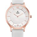 Женские наручные часы Cover CO2037.14 из коллекции Essential сочетают в себе классический дизайн и высокую точность швейцарского производства. Модель обладает круглым корпусом диаметром 38 мм, изготовленным из нержавеющей стали с PVD-покрытиемPVDУльтратонкое покрытие наносится в технике вакуумного напыления, сочетает в себе нитрид титана особой прочности со слоем золота или оксида хрома. Несёт в себе декоративную или защитную функцию. цвета розового золота, что придает изделию благородный внешний вид. Для защиты используется сапфировое стеклоСапфировое стеклоПрочный и надёжный материал из кристалла сапфира синтетического происхождения, характеризующийся особой твёрдостью и устойчивостью к царапинам и повреждениям. с антибликовым покрытиемАнтибликовое покрытиеСлой оксида металла в 0,13-0,3 микрон, благодаря которому стекло часов не бликует и не отражает свет. Антибликовое покрытие уменьшает отражение света в 10 раз, обеспечивая отличную читаемость показателей циферблата., обеспечивающее прочную защиту от царапин и превосходную читаемость времени даже при ярком свете. Часы работают на высокоточном кварцевом механизме, гарантирующем исключительную точность хода с погрешностью около 20 секунд в месяц. Кожаный ремешок на классической застежке. Водонепроницаемость достигает 5 атмосфер (50 метров), что позволяет использовать их во время дождя и мытья рук, но не рекомендуется для плавания. Эти швейцарские часы станут идеальным дополнением как классического, так и современного образа.