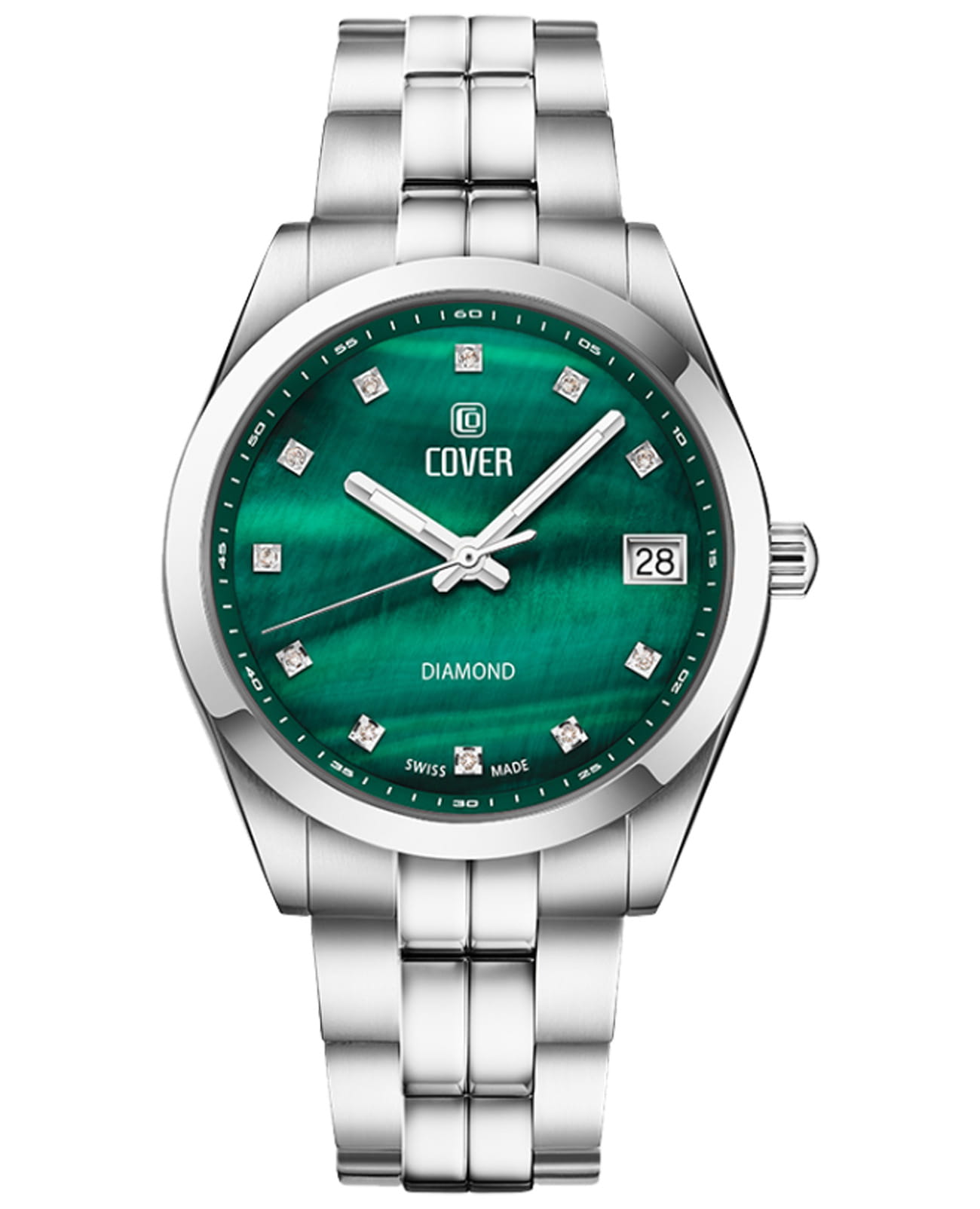 Представляем женские швейцарские часы Cover из коллекции Andara Diamond, модель CO210.03 — воплощение элегантности и роскоши. Эта уникальная модель украшена синтетическими бриллиантами, которые гармонично сочетаются с зеленым перламутровым циферблатом, создавая ослепительную игру света на запястье. Стальной корпус диаметром 35 мм выполнен в пропорциональных размерах, что делает часы удобными для повседневного ношения. Циферблат защищен прочным сапфировым стекломСапфировое стеклоПрочный и надёжный материал из кристалла сапфира синтетического происхождения, характеризующийся особой твёрдостью и устойчивостью к царапинам и повреждениям., устойчивым к царапинам и обеспечивающим идеальную читаемость времени даже при ярком свете. Модель оснащена водонепроницаемостью до 10 АТМ, что позволяет использовать часы во время плавания или занятий водными видами спорта. Однако важно помнить, что во время погружения рекомендуется не нажимать кнопки и не пользоваться заводной головкой. Стальной браслет на застёжке-бабочке с кнопкамиЗастёжка "бабочка"Такой вид застёжки дополняется предохранителями, помогающими избежать случайного раскрытия браслета. Обладают изящным исполнением. .