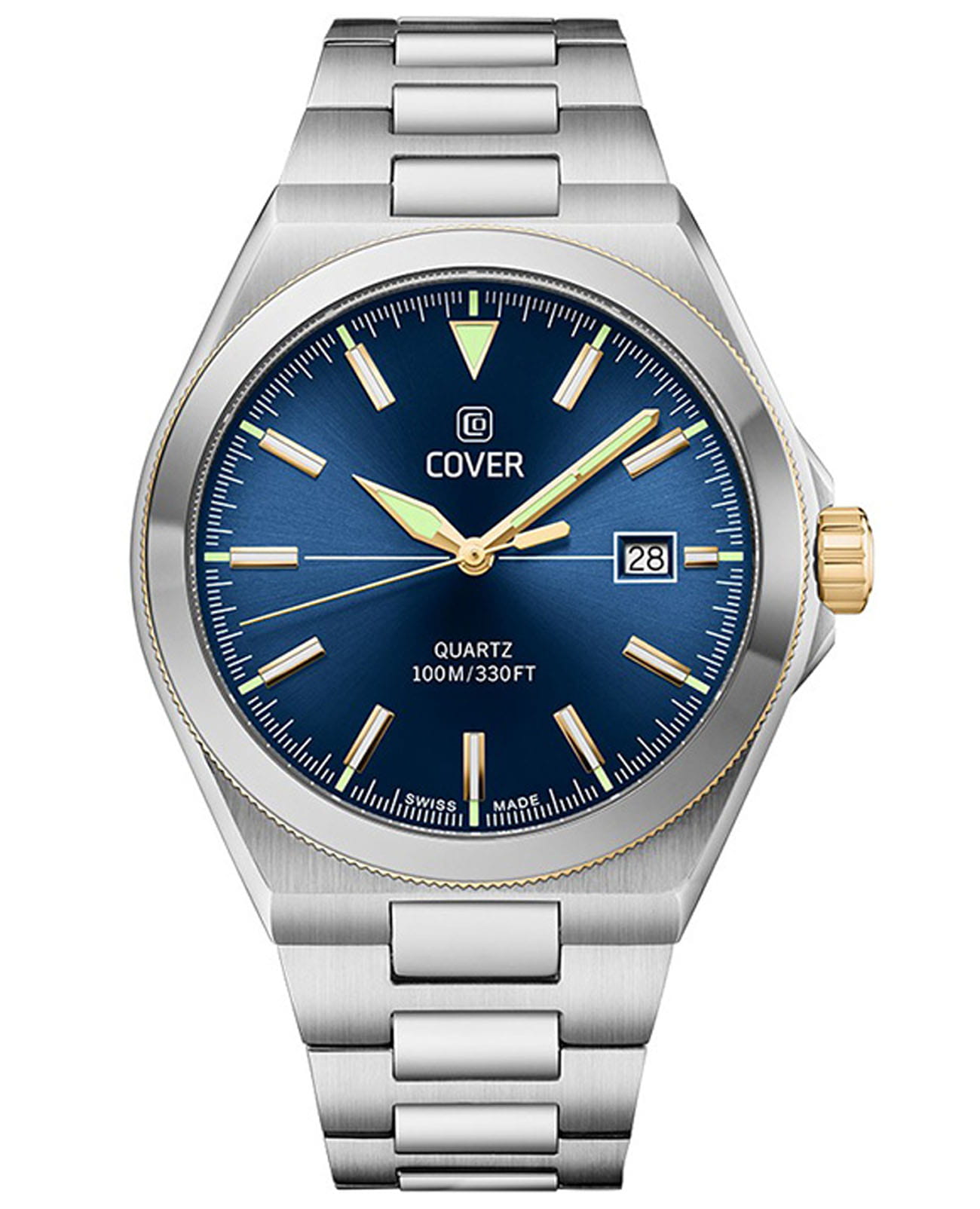 Cover CO213.04 – элегантные мужские часы, сочетающие классический дизайн и современные технологии. Корпус диаметром 41 мм выполнен из нержавеющей стали 316L, что обеспечивает прочность и долговечность. БезельБезельВнешний ободок, закрепляющий стекло. В спортивных часах так называется поворотное кольцо с делениями на циферблате, выполняет роль таймера – замеряет отрезки времени на шкале. Неподвижный безель – элемент декора. Однонаправленно вращающийся безель на дайверских часах позволяет фиксировать моменты погружения и выныривания на поверхность. с PVD-покрытиемPVDУльтратонкое покрытие наносится в технике вакуумного напыления, сочетает в себе нитрид титана особой прочности со слоем золота или оксида хрома. Несёт в себе декоративную или защитную функцию.. Циферблат с чёткими часовыми метками и стрелками, покрытыми люминесцентным покрытиемЛюминесцентное покрытиеПозволяет считывать показания времени в темноте. Производители наносят на стрелки, часовые индексы, безель или поверхность циферблата светонакопительный состав, дающий холодное свечение., гарантирует отличную читаемость в любых условиях, а его поверхность защищена сапфировым стекломСапфировое стеклоПрочный и надёжный материал из кристалла сапфира синтетического происхождения, характеризующийся особой твёрдостью и устойчивостью к царапинам и повреждениям., устойчивым к царапинам. Часы оснащены швейцарским кварцевым механизмом, обеспечивающим точный ход и надёжность. Браслет из нержавеющей стали оснащён раскладной застёжкойРаскладная застёжкаТакой тип застёжки используется только на браслетах из металла. Она никогда не раскрывается полностью, происходит разделение на 2 и более частей. Раскладывающая застёжка снизит вероятность потери часов к минимуму., обеспечивающей удобную и надёжную фиксацию на запястье. Водонепроницаемость до 100 метров, позволит плавать, нырять и заниматься другими водными видами спорта.